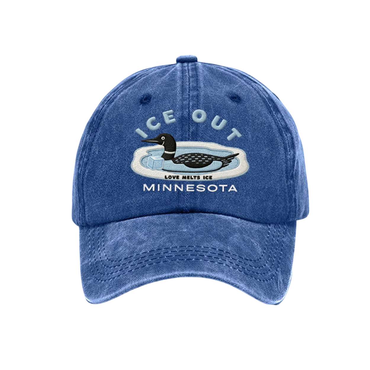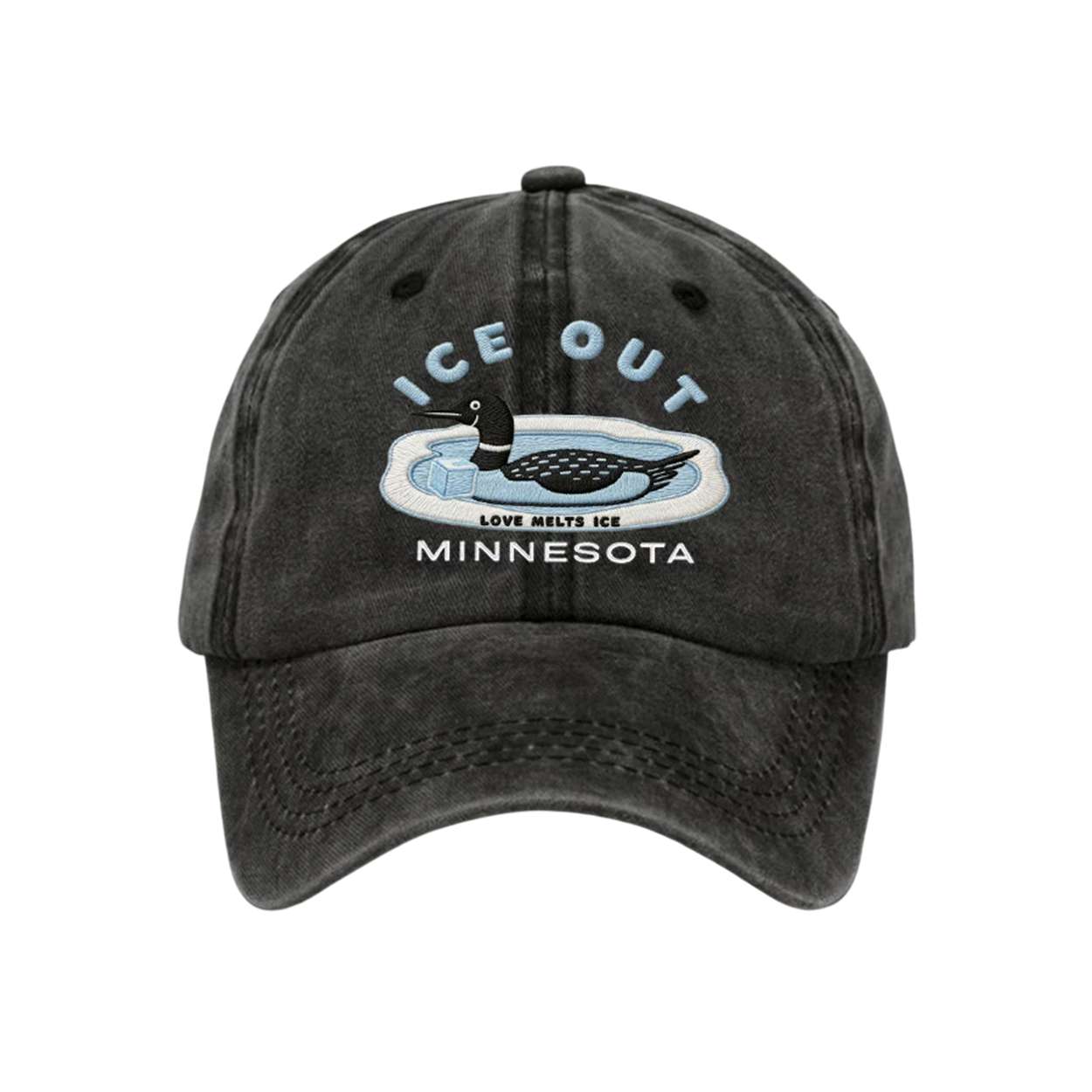 The ICE Out Minnesota Love Melts Ice Hat blends poetic imagery with regional pride. Featuring a loon and thawing ice, it reflects seasonal change and emotional warmth. Inspired by real traditions and cultural symbolism, this cap speaks to nature, renewal, and connection.