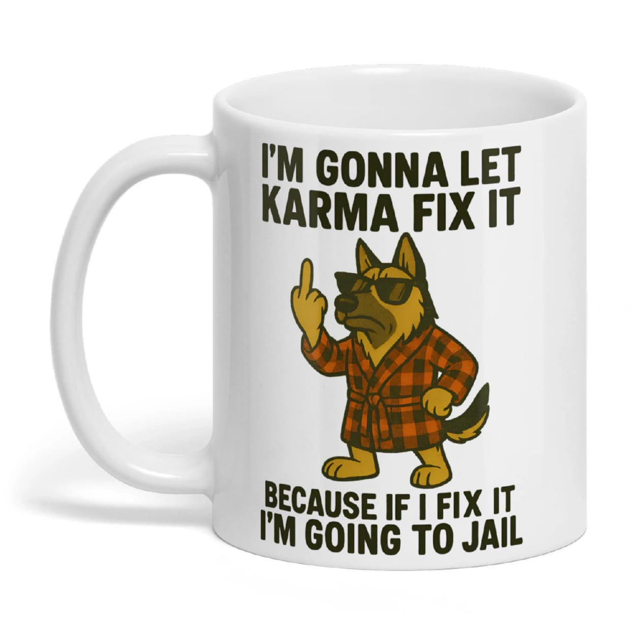 Unleash your attitude with the I’m Gonna Let Karma Fix It German Shepherd Mug. This bold statement piece mirrors today’s struggle for patience and fairness in a chaotic world. Perfect for dog lovers who stand for justice but keep their cool—letting karma handle what they can’t.