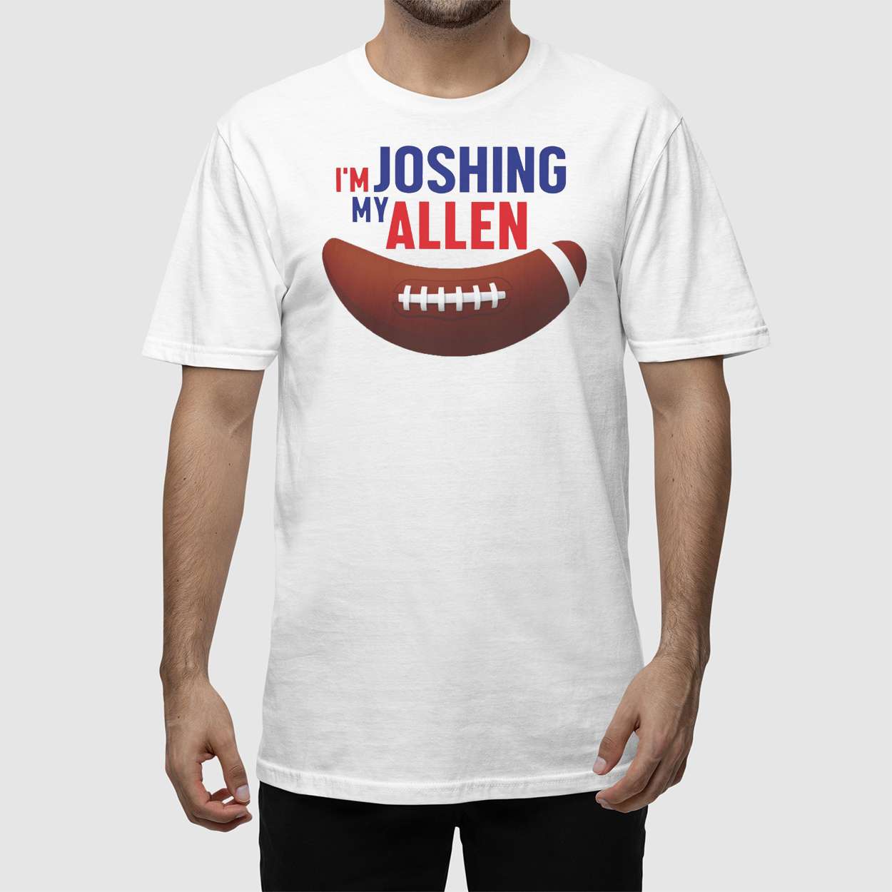 Show off your wit and sports savvy with the Im Joshing My Allen Shirt—a clever nod to quarterback Josh Allen and the culture of playful fandom. This shirt blends humor, athletic legacy, and fan-driven expression into one bold design.
