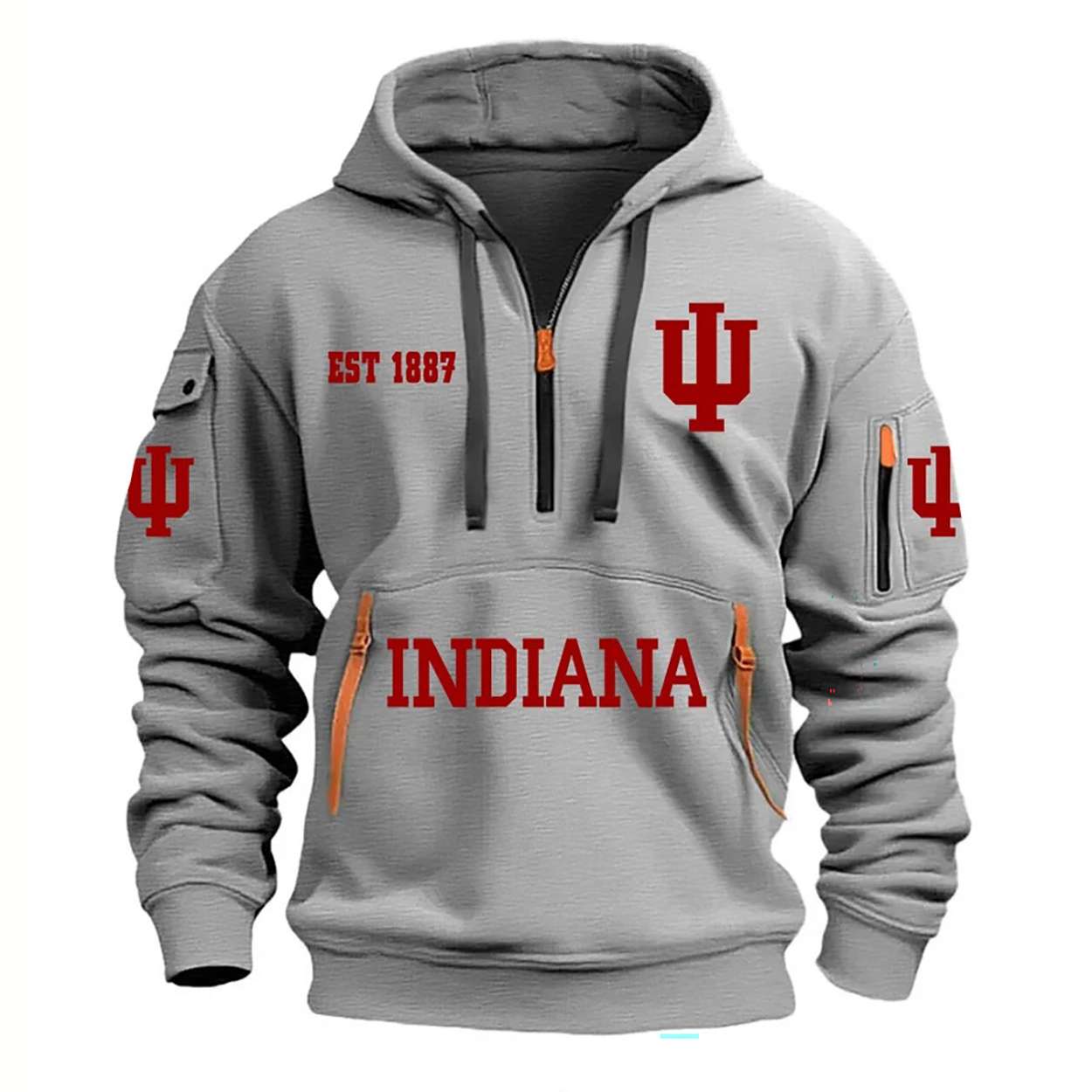 Show your Hoosier pride with the Indiana Football Est 1887 Hoodie Half Zipper. Featuring bold graphics and historical flair, this hoodie honors the legacy of Indiana University football and its enduring impact on collegiate sports and campus culture.