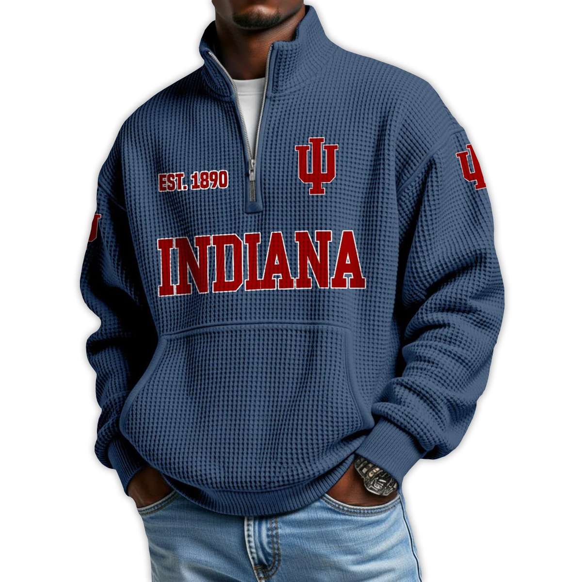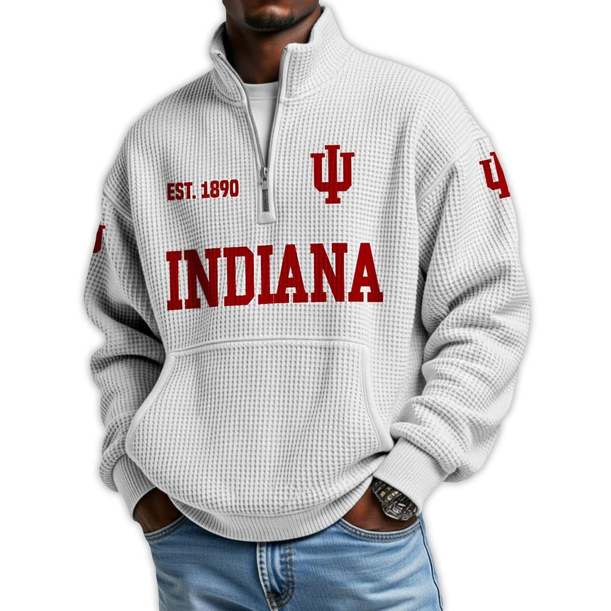 Show your Indiana pride with the Indiana Football Est 1890 Waffle Stand Collar Half Zip Sweatshirt. A tribute to grit, legacy, and the enduring spirit of Hoosier athletes. Perfect for fans who value history, character, and timeless collegiate style.