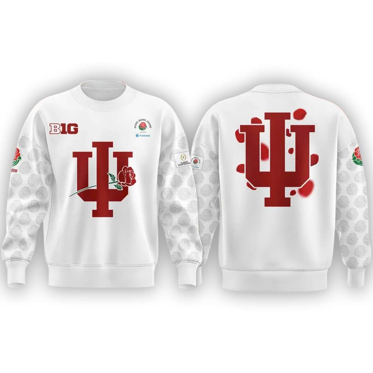 The sweatshirt’s rose graphics honor the Tournament of Roses, where Indiana’s presence reflected more than sport—it echoed progress, unity, and the power of college athletics to uplift communities and challenge expectations on a national stage.