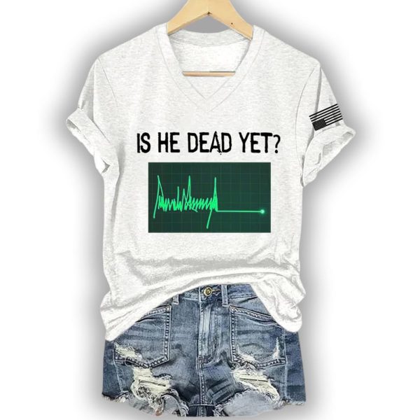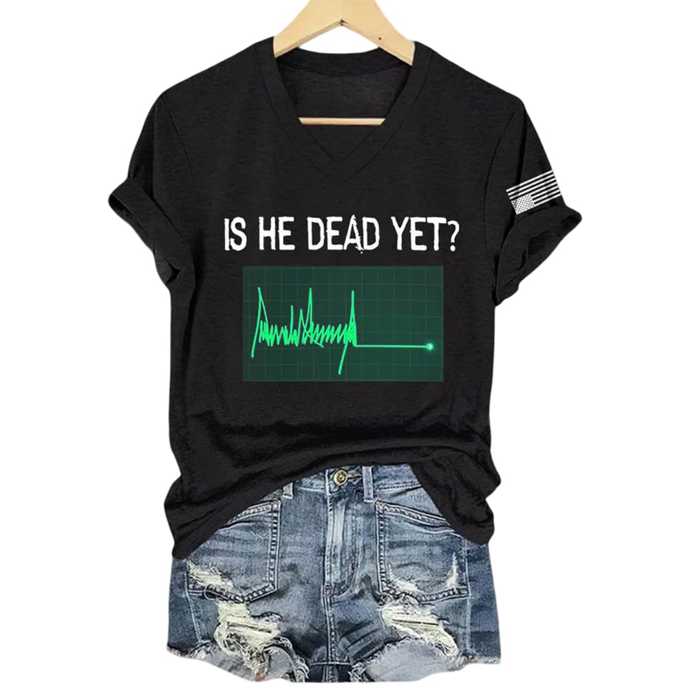 The Is He Dead Yet Green Flatline Trump Shirt is more than just a piece of clothing – it’s a conversation starter. With the iconic question and a flatline graphic displayed in green, it cleverly blends medical symbolism with political commentary. This shirt captures the pulse of the moment in an unforgettable way, making it perfect for those who like their fashion with a touch of satire.