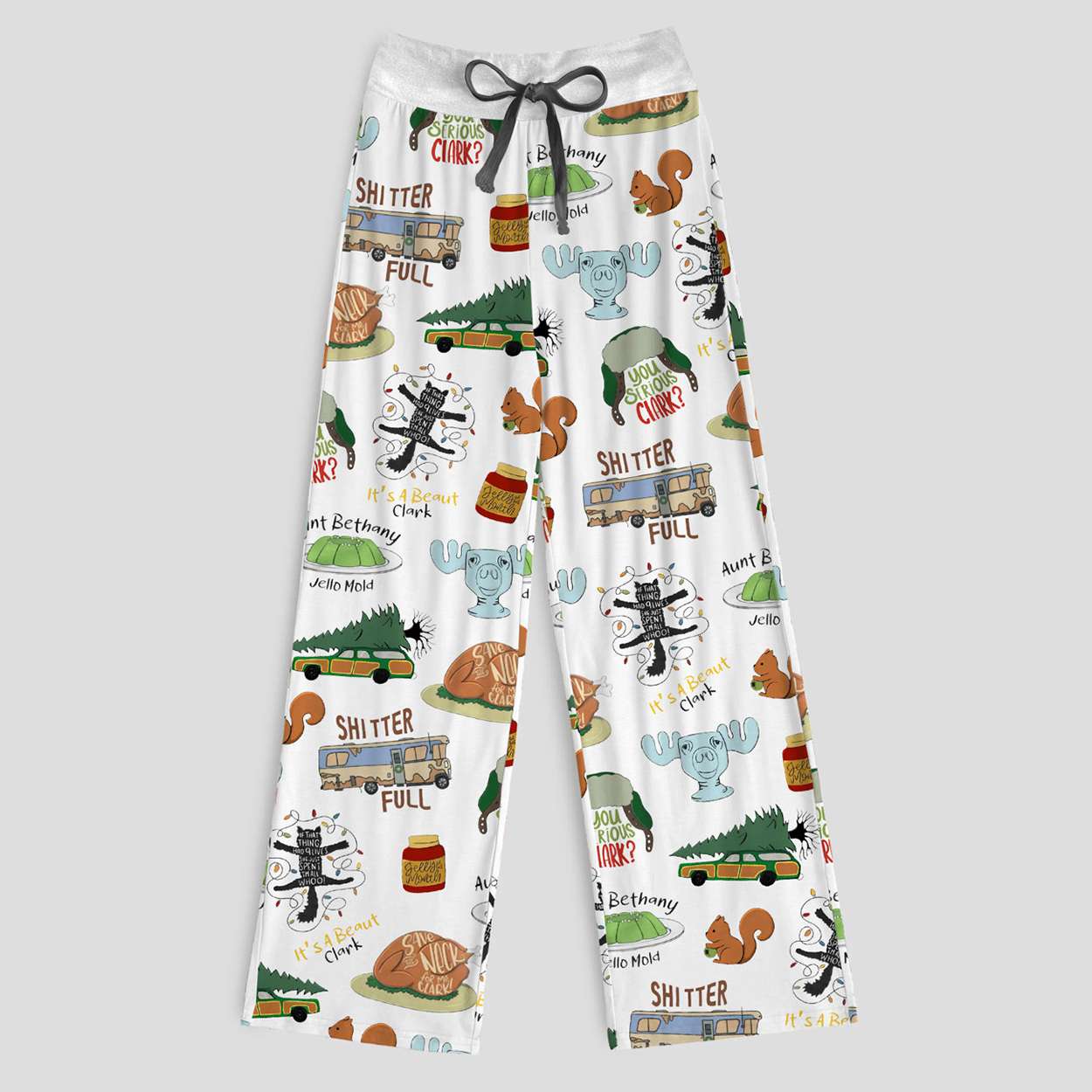 These pants channel the unforgettable energy of Clark Griswold’s holiday misadventures, featuring quotes like “You serious, Clark?” and “Shitter’s full.” Each phrase captures the chaotic charm of a film that redefined dysfunctional family gatherings with wit and warmth.
