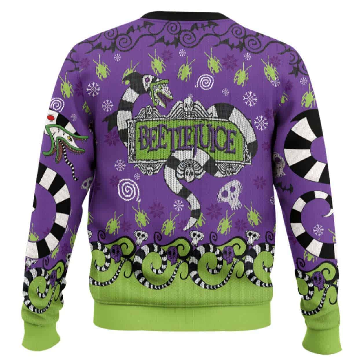 Beyond a festive statement, this sweater resonates with fans who value creativity and individuality. It’s a conversation piece reminding wearers of Beetlejuice’s rebellious spirit, his defiance of conformity, and the enduring charm of eccentric cinema that shaped generations of alternative holiday fun.
