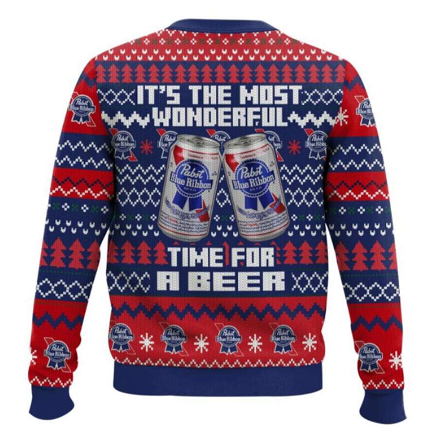 It’s The Most Wonderful Time For A Pabst Blue Ribbon Ugly Christmas Sweater – Holiday Humor with Classic Brew Spirit