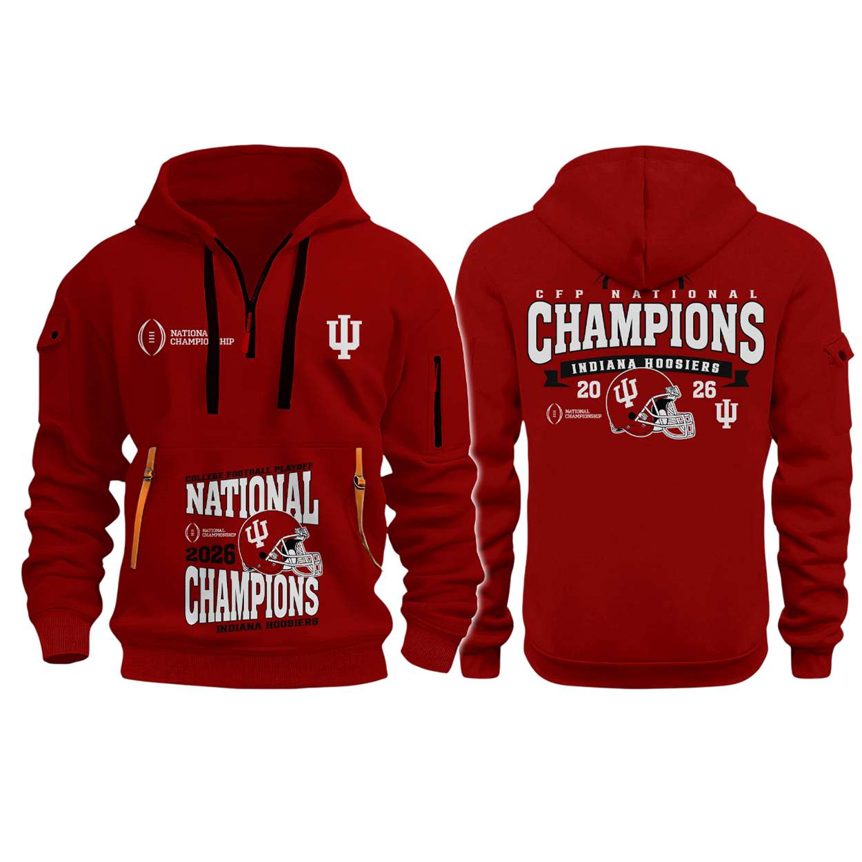 Show your pride in Indiana’s historic 2026 football victory with this IU Football National Champions 2026 Quarter Zip Hoodie. Featuring bold championship graphics and iconic symbols, it honors the team’s grit, leadership, and cultural impact during a season that reshaped college sports narratives.