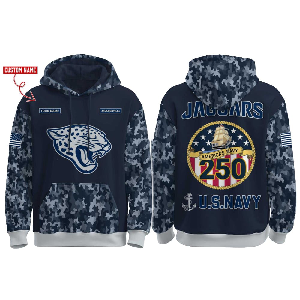 Honor the legacy of the U.S. Navy and the Jacksonville Jaguars with this Jaguars US Navy 250th Birthday Celebration Hoodie 2025, featuring designs that commemorate the 250th anniversary of America’s Navy. Crafted to showcase a blend of patriotism and team spirit, this hoodie is the perfect tribute to both iconic institutions.