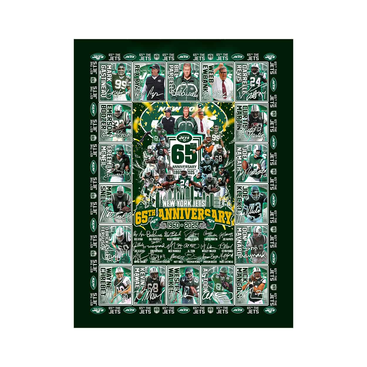 Honor 65 years of New York Jets legacy with this Jets 65th Anniversary 1960-2025 Blanket. Featuring iconic players, historic milestones, and unforgettable moments, it’s a tribute to grit, teamwork, and the enduring spirit of New York football fans.