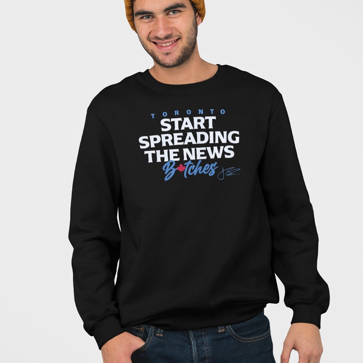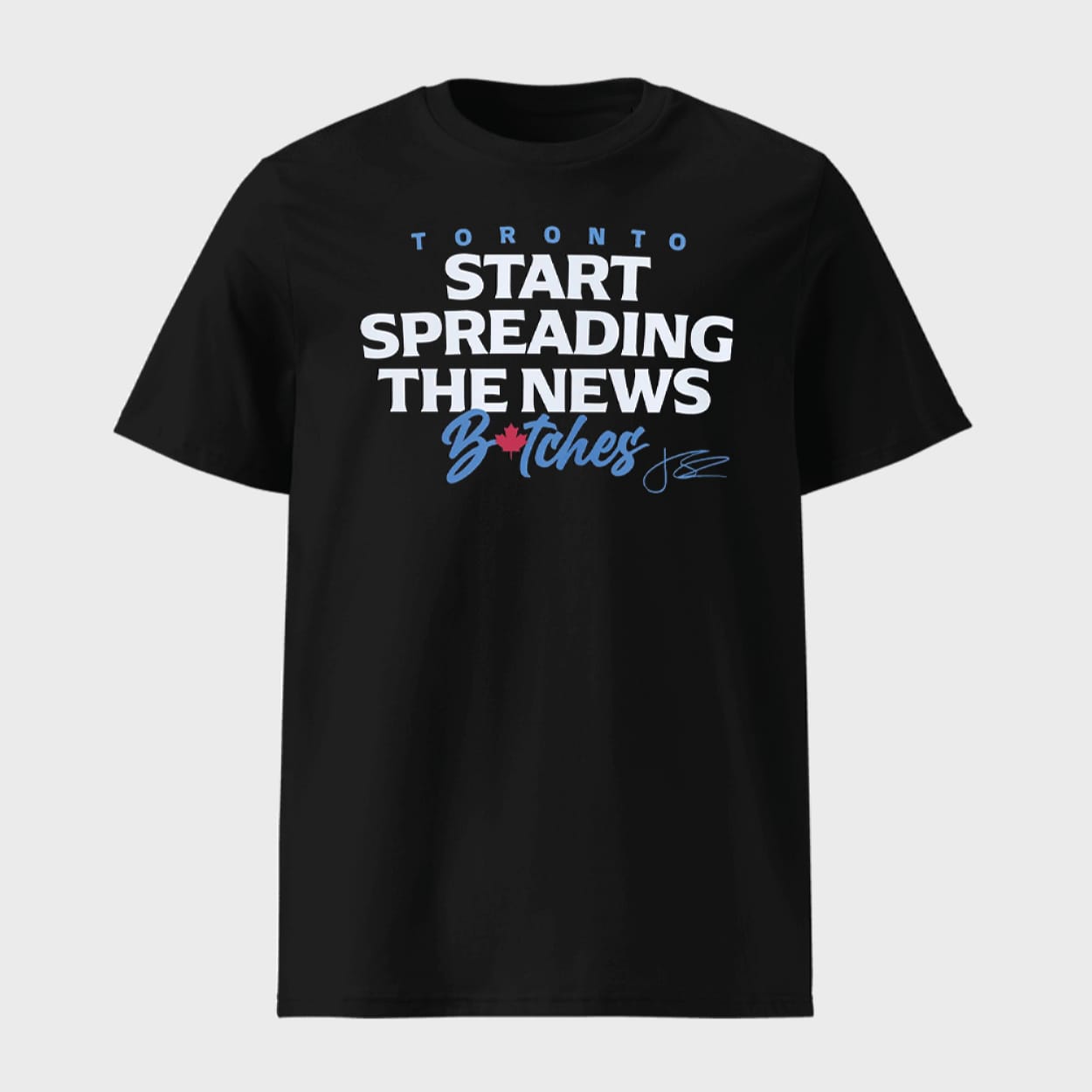 When John Schneider dropped the now-legendary line “Start Spreading The News, B*tches,” it wasn’t just a quote — it became a symbol of Toronto’s fierce energy and confidence. This shirt immortalizes that moment, echoing the pride and rivalry that defines Canadian baseball’s boldest chapter.