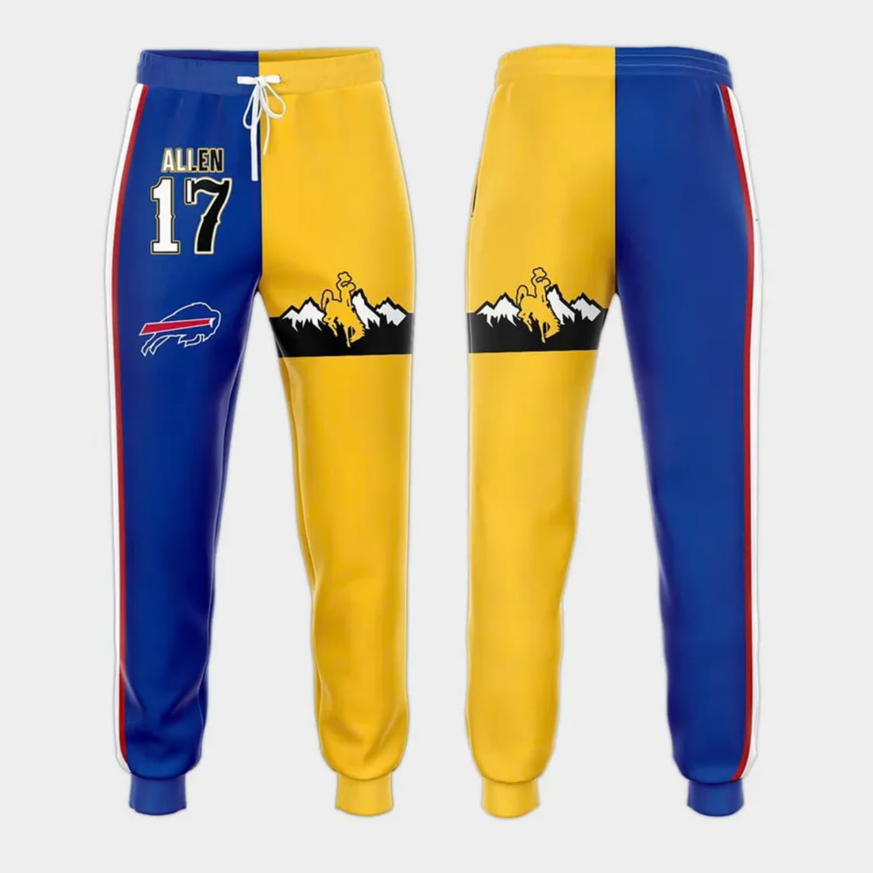 - Dual-Team Graphics: Features unique artwork combining elements from both the Bills (including his number 17) and the Wyoming Cowboys (such as the school’s logo or colors), symbolizing his football journey.
