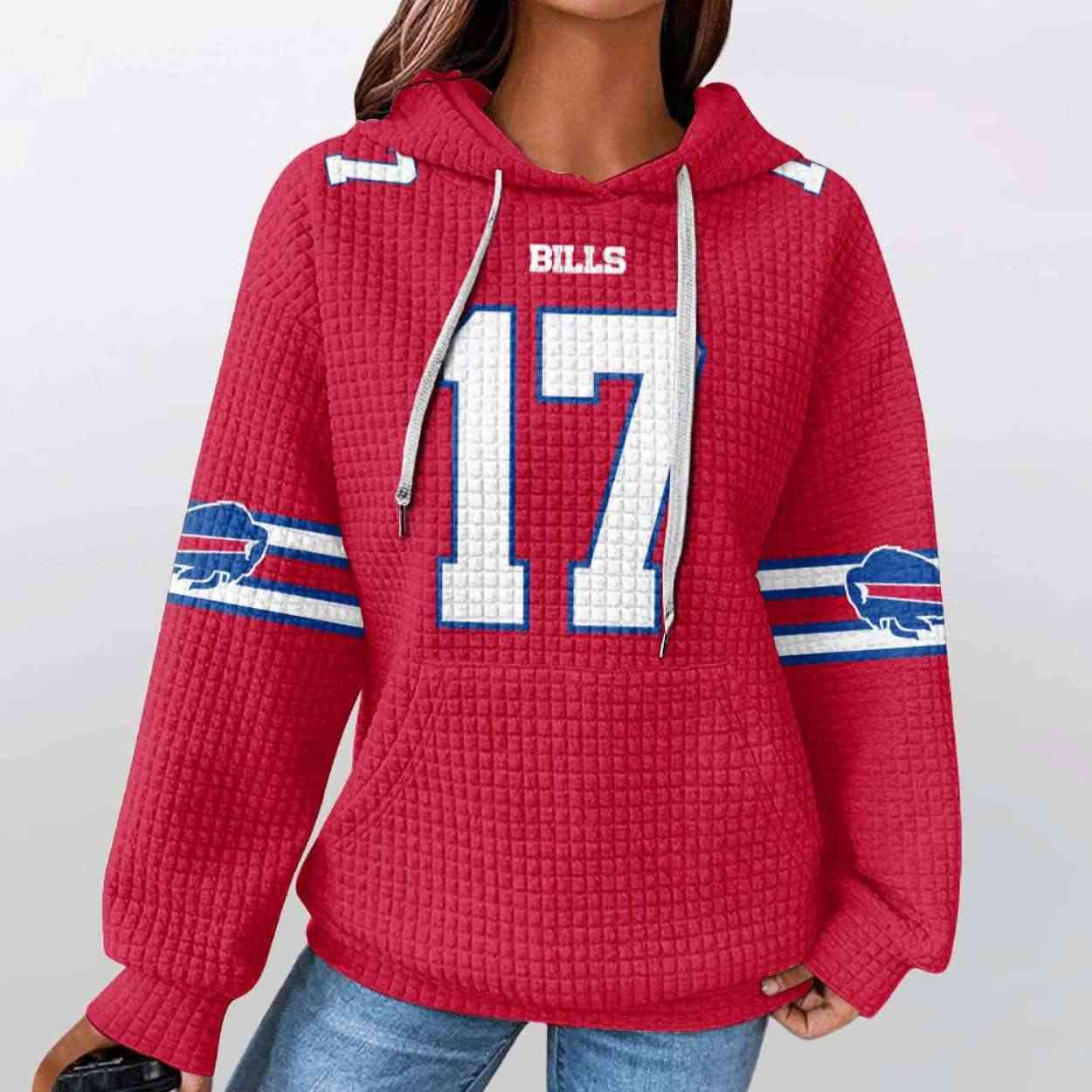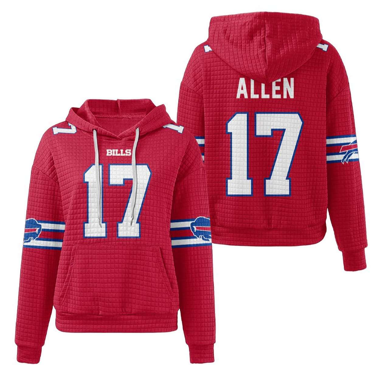 Show your loyalty with the Josh Allen Bills Waffle Hoodie, inspired by Buffalo’s fearless quarterback. Featuring bold #17 graphics and team legacy details, this hoodie connects fans to the grit, heart, and history of football’s rising icon. Own the moment.