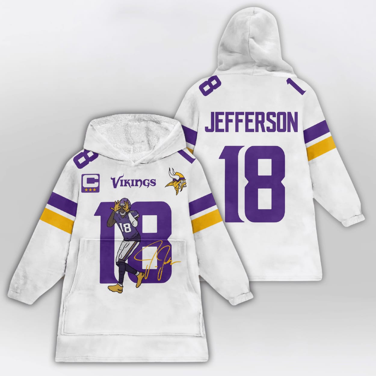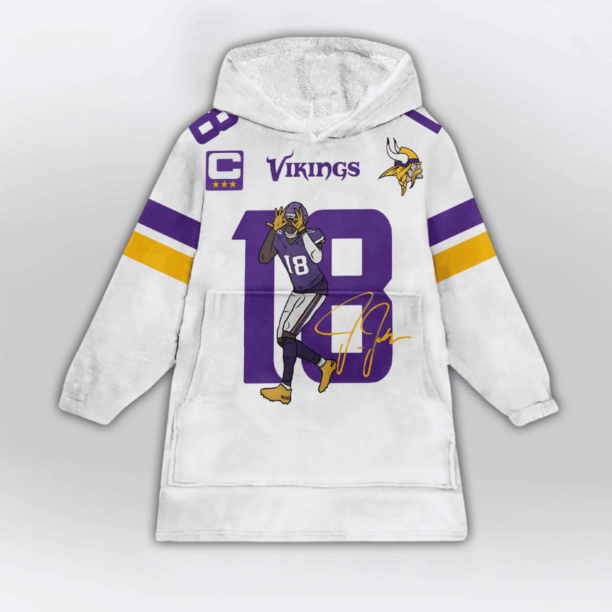 Justin Jefferson 18 Captain Vikings Signature Blanket Hoodie – Captain’s Legacy in Every Stitch