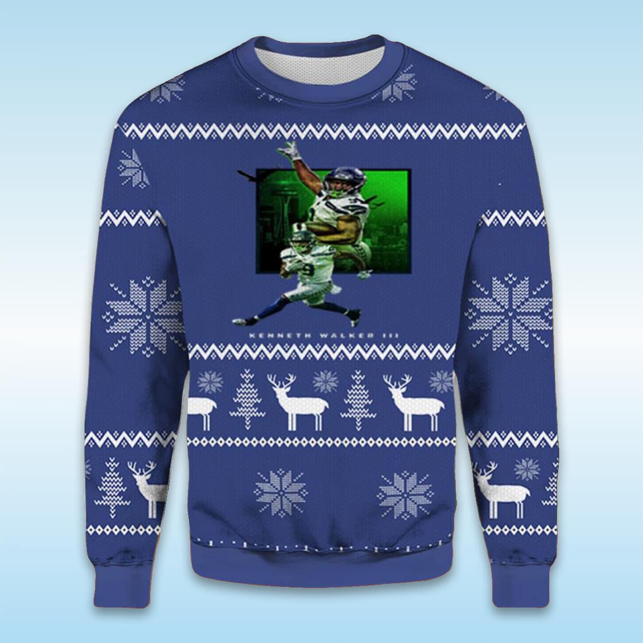 Kenneth Wallker Seahawks Ugly Christmas Sweater – Seattle’s Spark in Winter Threads