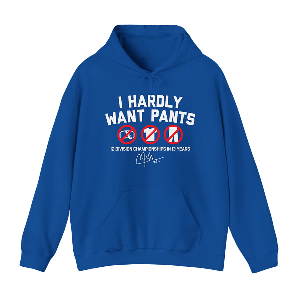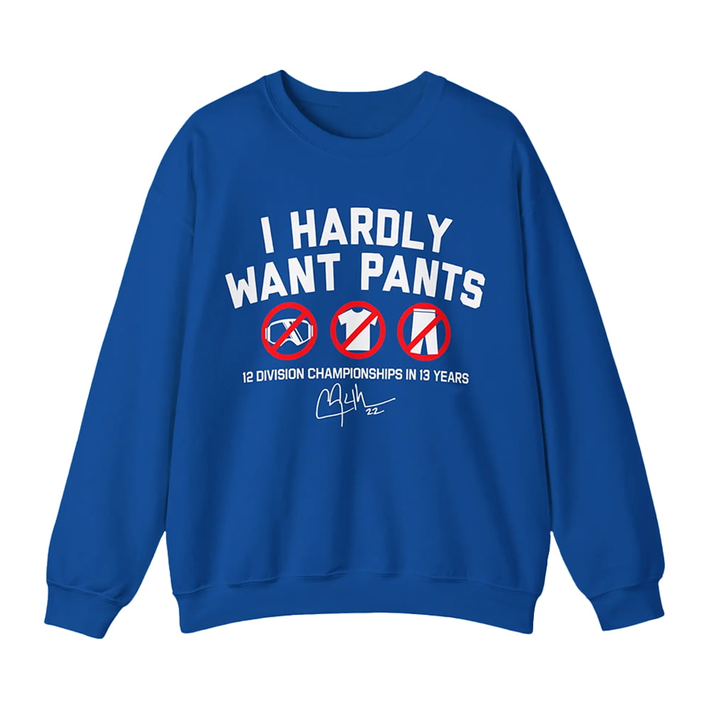 This I Hardly Want Pants Shirt skyrocketed into fan-favorite status after Clayton Kershaw’s jubilant locker-room proclamation—“I hardly want pants, Dave!”—when the Dodgers clinched the NL West, and reached peak hype when Kiké Hernández rocked it during the celebration, sealing their 12th division title in 13 years.