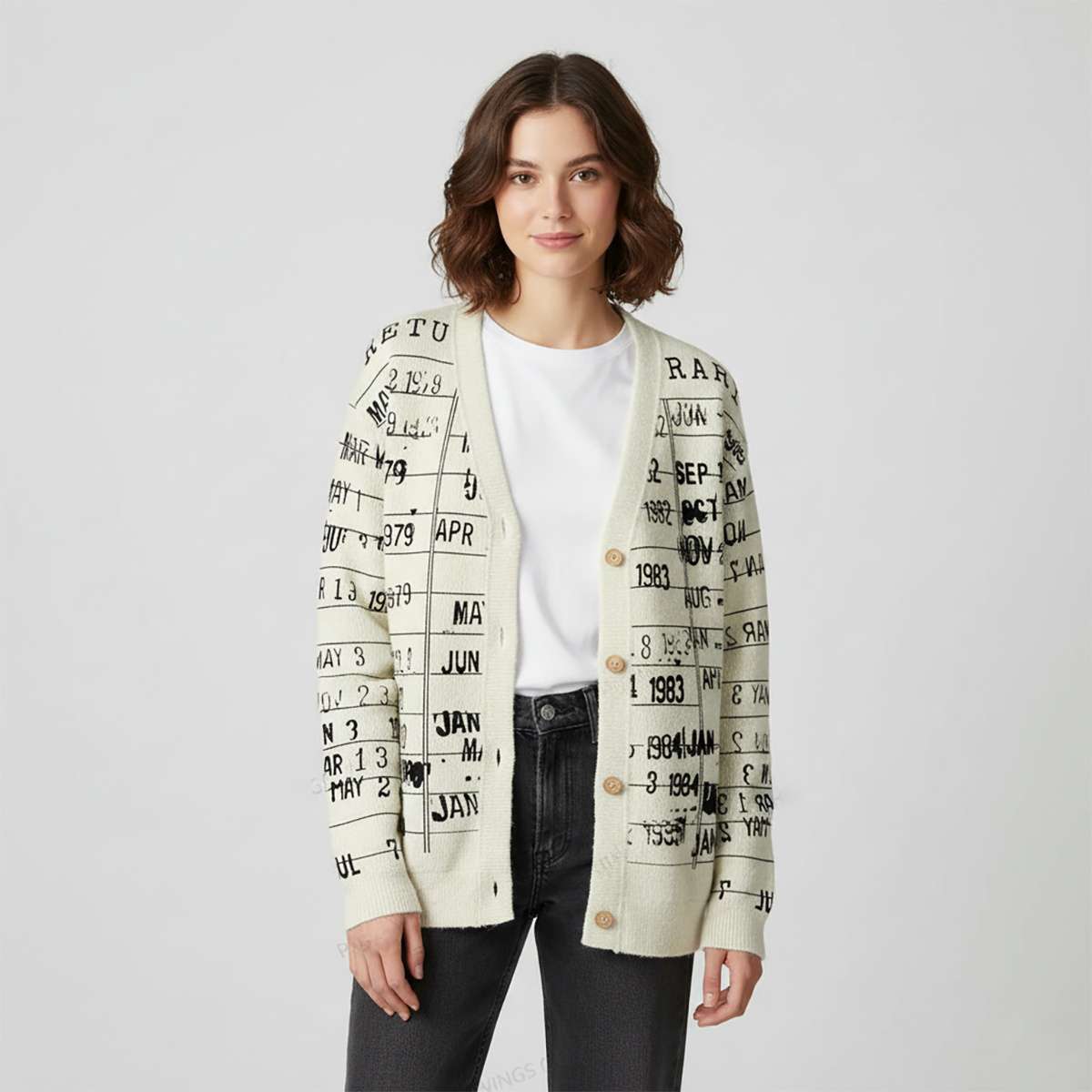 Step into a story with our Library Card Unisex Ugly Cardigan Sweaters—where fashion meets nostalgia. Featuring vintage calendar stamps and historical dates, this sweater celebrates literary culture, archival memory, and timeless style. A wearable tribute to readers and rebels alike.