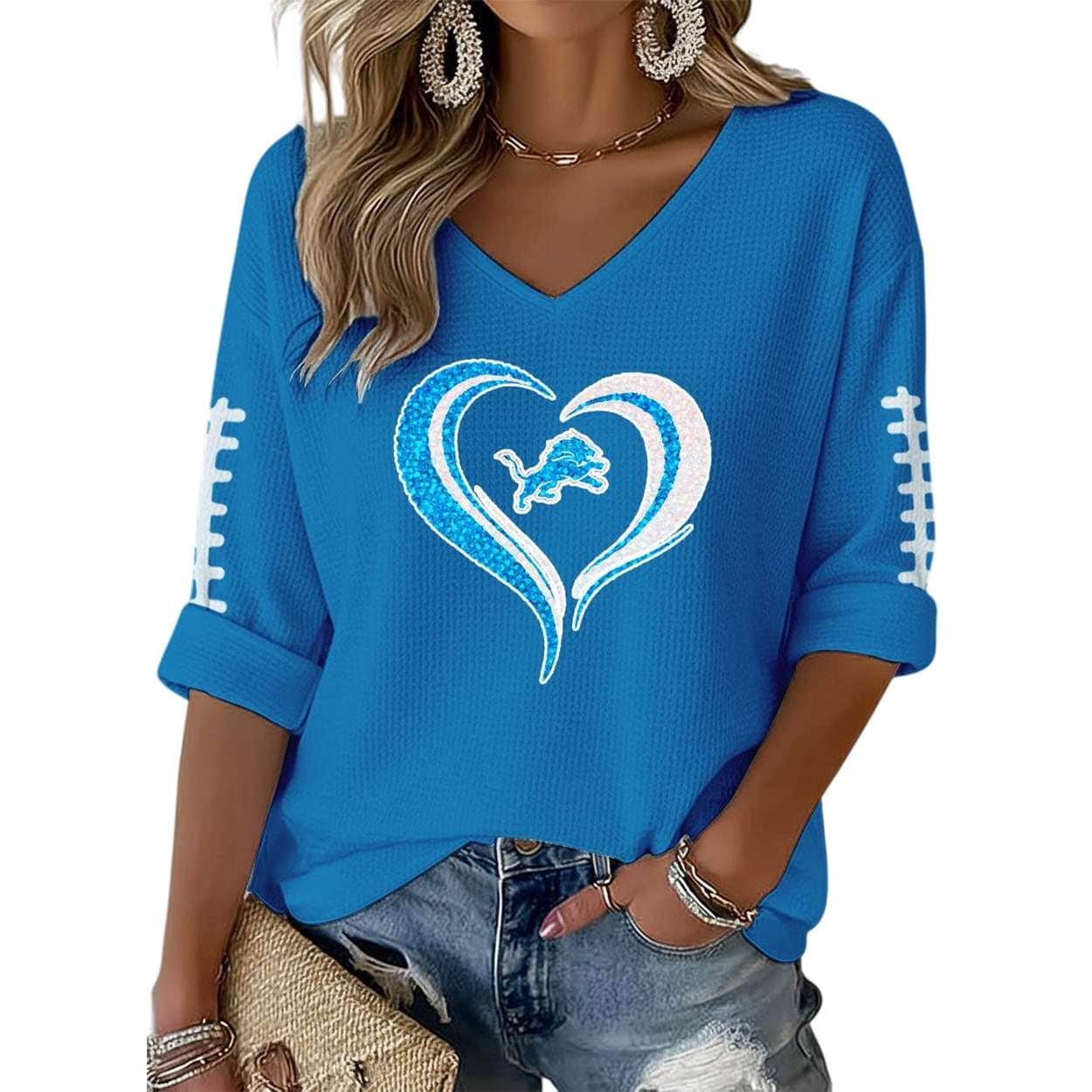 Show your pride with the Lions Heart Football Waffle Long Sleeve Shirt. Featuring a bold lion emblem and heart-shaped design, this shirt connects fashion with Detroit’s legacy, resilience, and community spirit. A must-have for fans who value meaning and style.