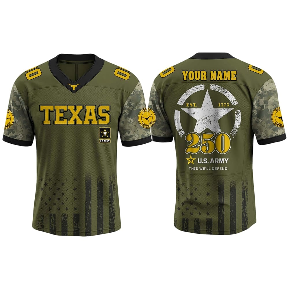 Longhorns US ARMY’S 250TH Birthday Celebration Jersey 2025 – Texas Pride Meets Military Legacy