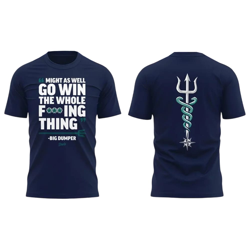Inspired by Mariners catcher Cal Raleigh’s fearless attitude, the Mariners Might As Well Go Win The Whole Fucking Thing Big Dumper Shirt is a bold fan statement. A mix of grit, team pride, and unforgettable playoff history, this shirt captures true Seattle spirit.
