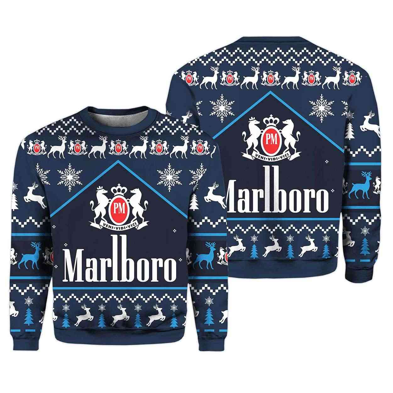 Turn heads this season with the Marlboro Ice Blast Ugly Christmas Sweater—a bold fusion of vintage tobacco iconography and icy winter motifs. Featuring the iconic PM crest and Latin motto, this design channels rebellious charm with nostalgic depth and cultural flair.