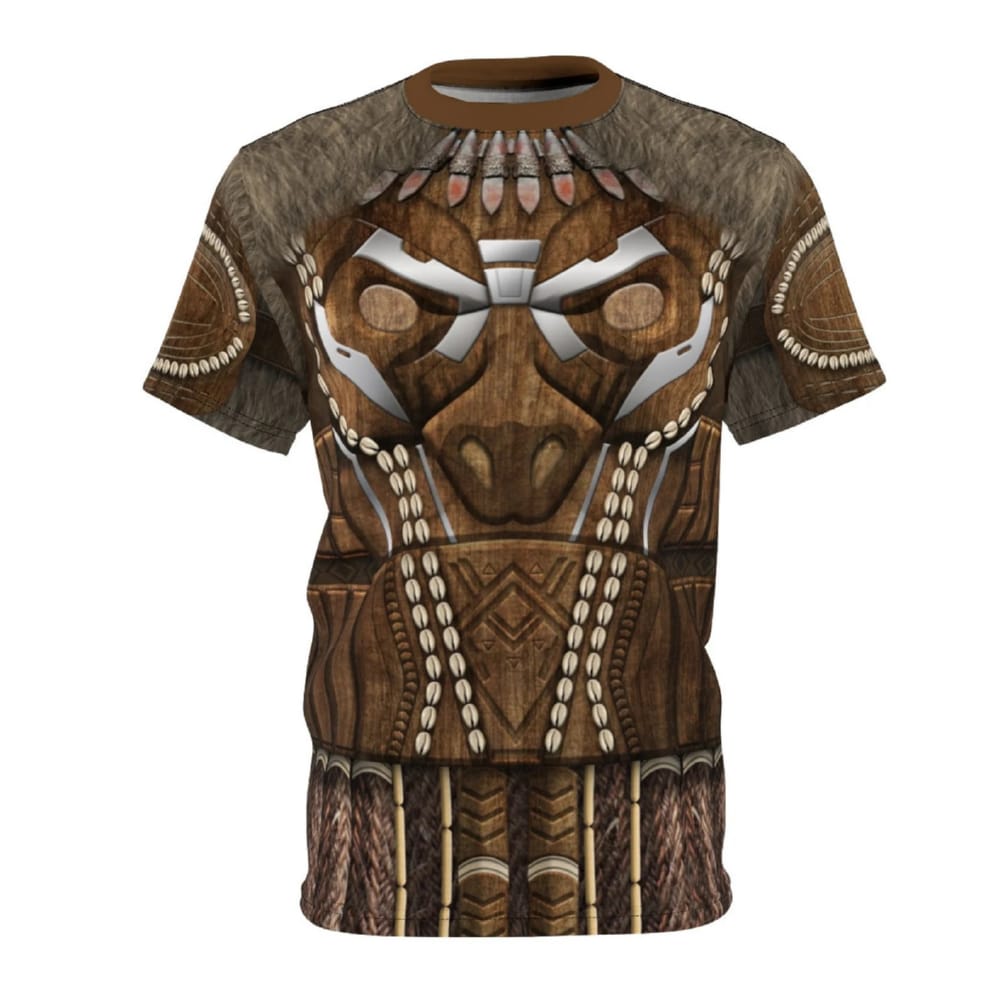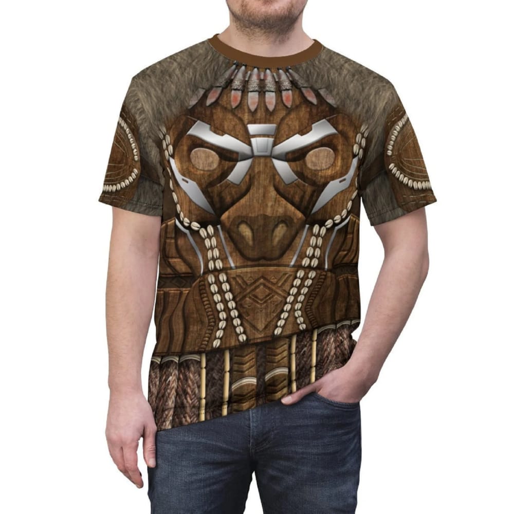 The shirt’s design intricately mirrors the ceremonial attire worn by M’Baku, featuring his iconic monkey armor that symbolizes his tribe’s deep connection to nature and their fierce independence. With detailed graphics of the armor, the shirt brings to life the majestic craftsmanship of the Jabari Tribe, known for their resilience and formidable fighting spirit. It’s more than just clothing; it’s a powerful representation of the tribe’s culture and M’Baku’s leadership.