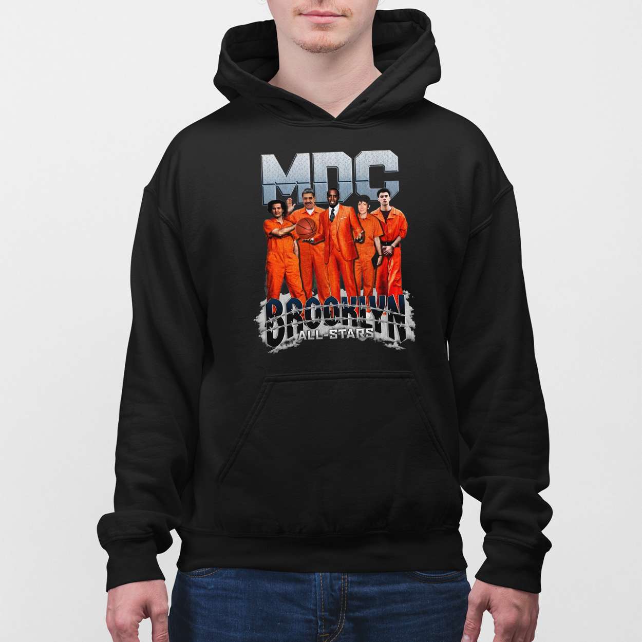 “Brooklyn All Stars” beneath the image evokes a fictional team forged in adversity. It’s a nod to the Metropolitan Detention Center’s real-world backdrop, where lives intersect with justice, struggle, and identity. The distressed font mirrors the tension between grit and greatness.