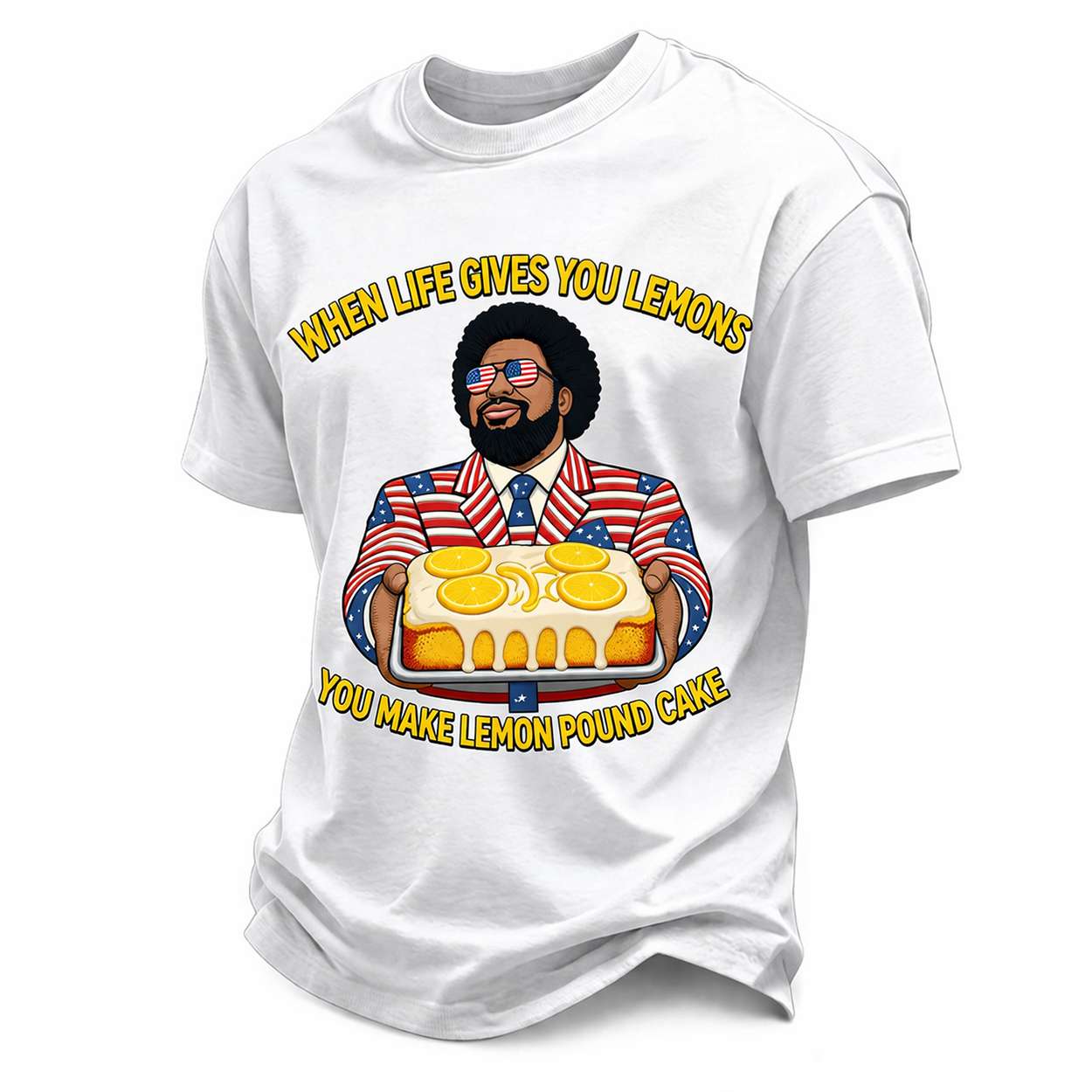 The Men’s Funny When Life Gives You Lemons You Make Lemon Pound Cake Print Tee blends humor with cultural references. Featuring bold graphics and witty text, it connects fans to iconic sayings, playful character design, and the shared joy of turning challenges into creativity.