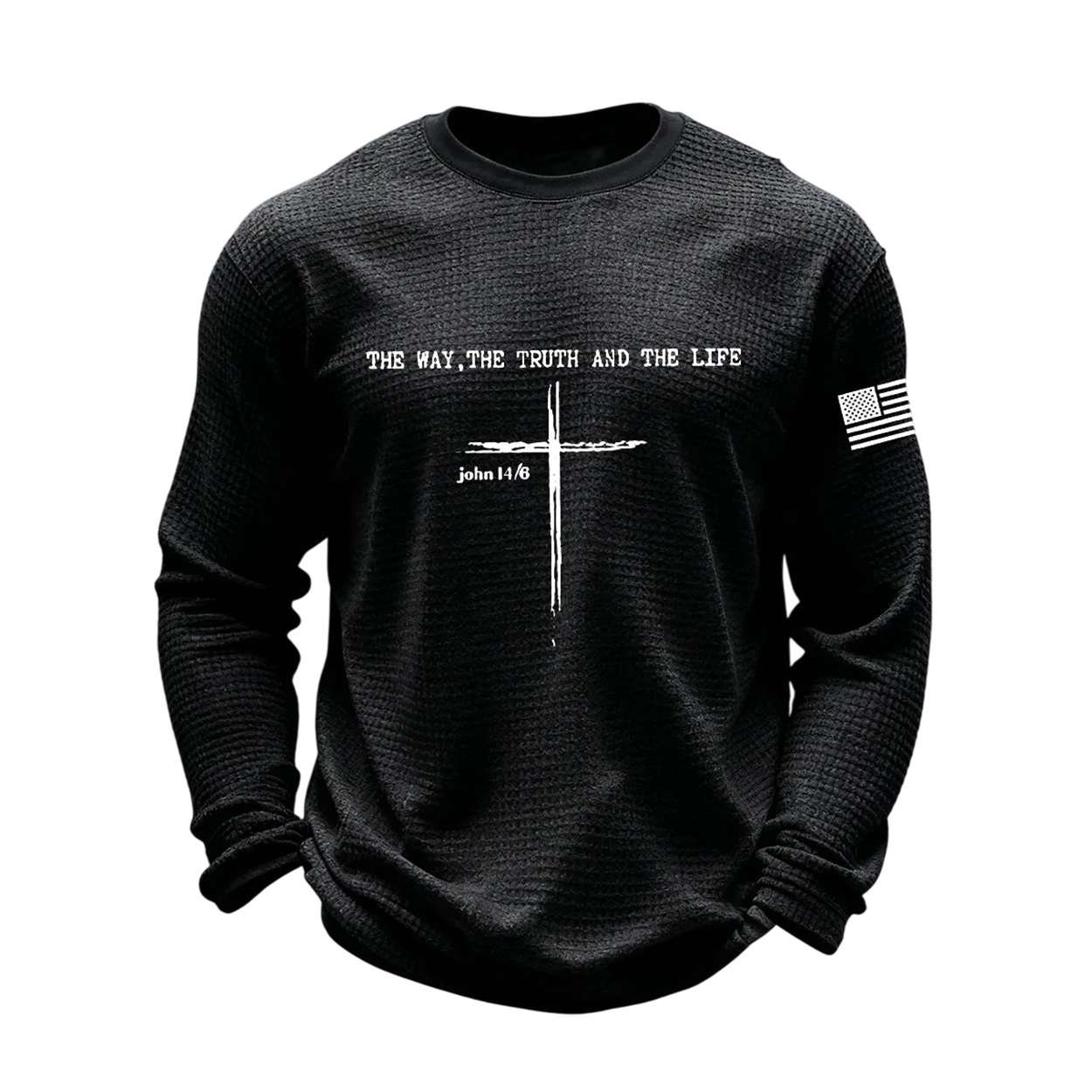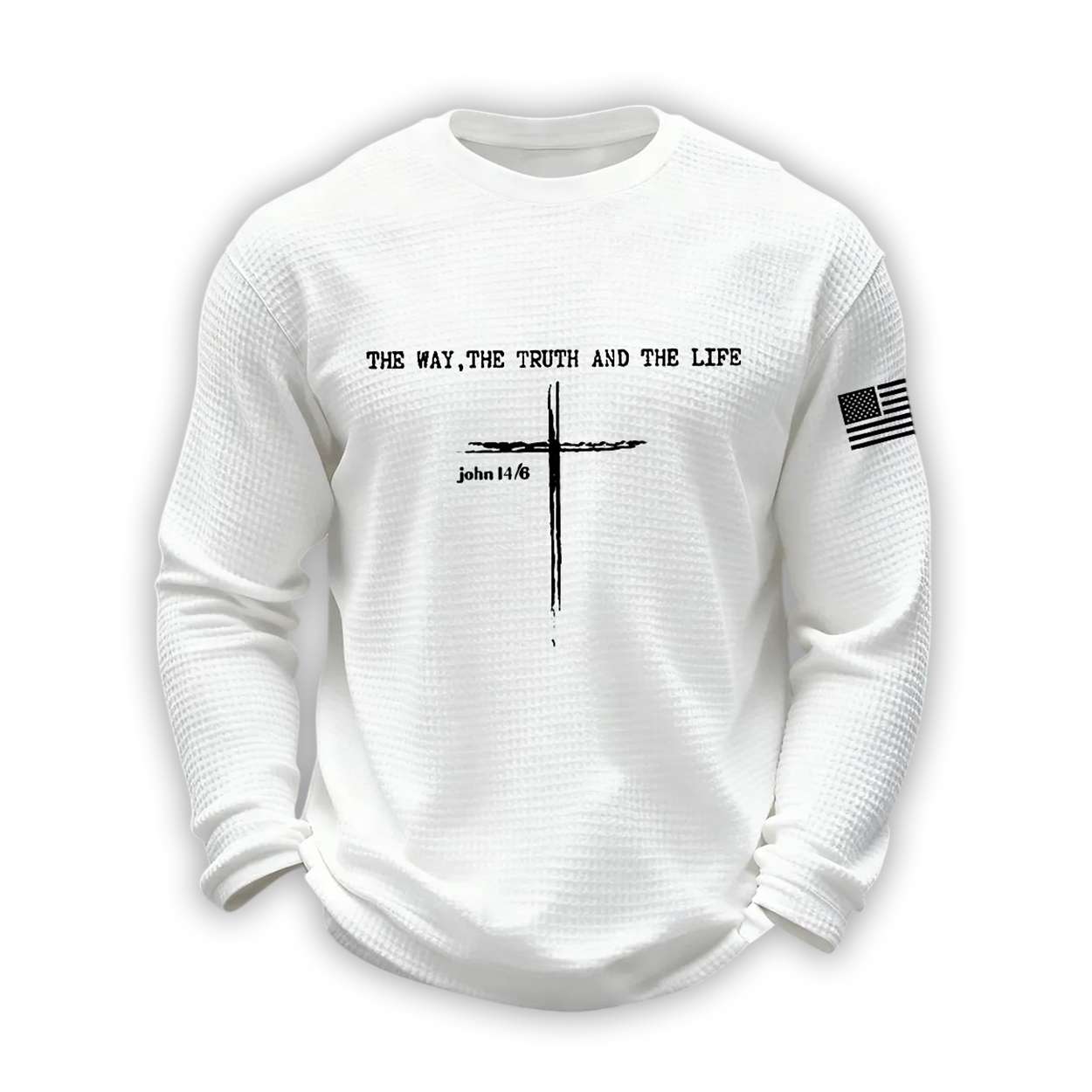 Honor your faith and values with the Men’s Jesus The Way The Truth The Life John 14 6 Christian Cross Waffle Long Sleeve T-Shirt. Featuring bold Christian symbolism and patriotic elements, this design reflects timeless truth, spiritual strength, and the enduring message of Jesus as the way forward.