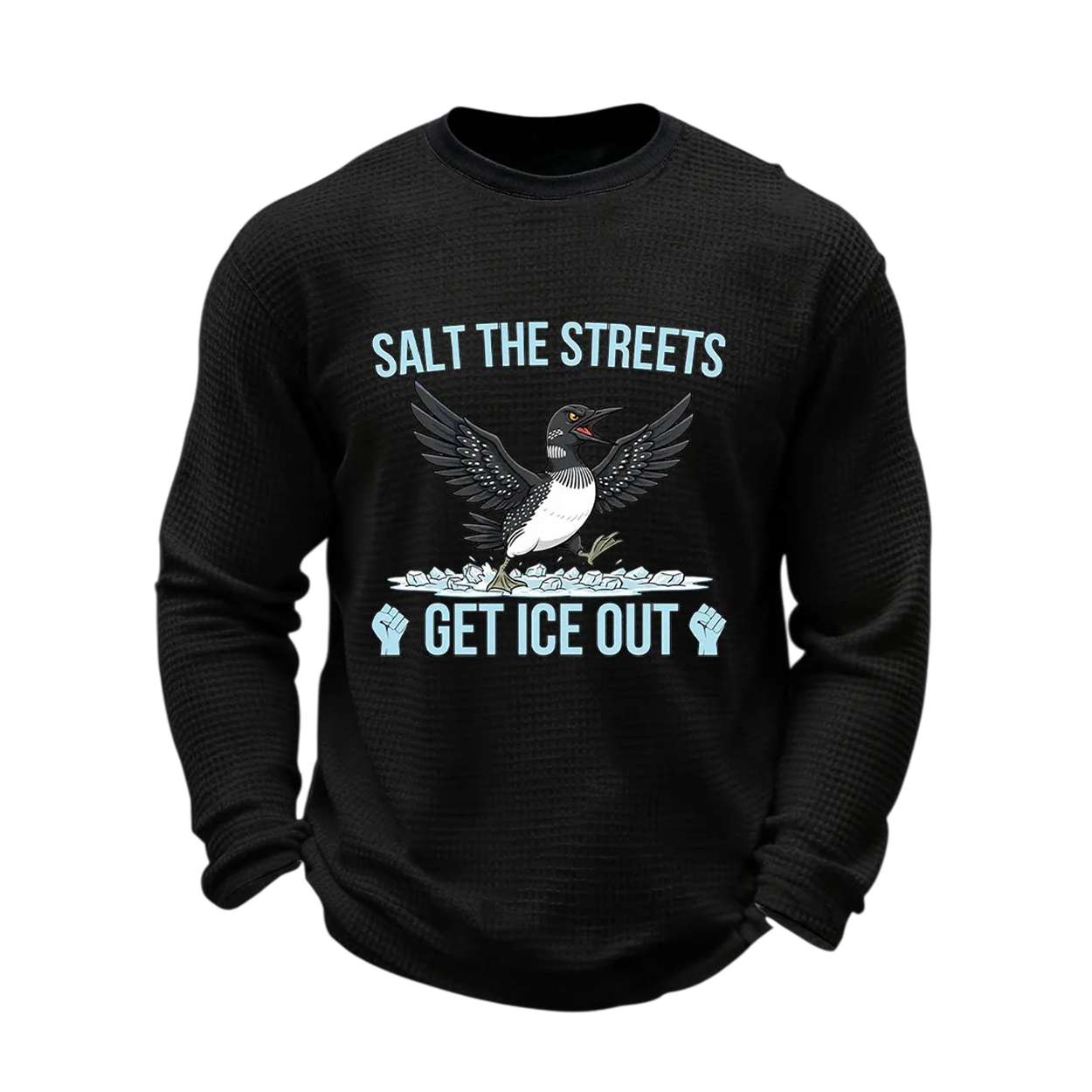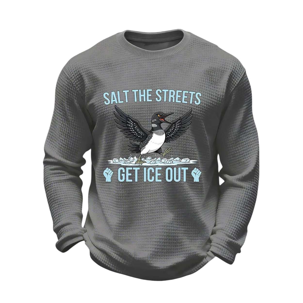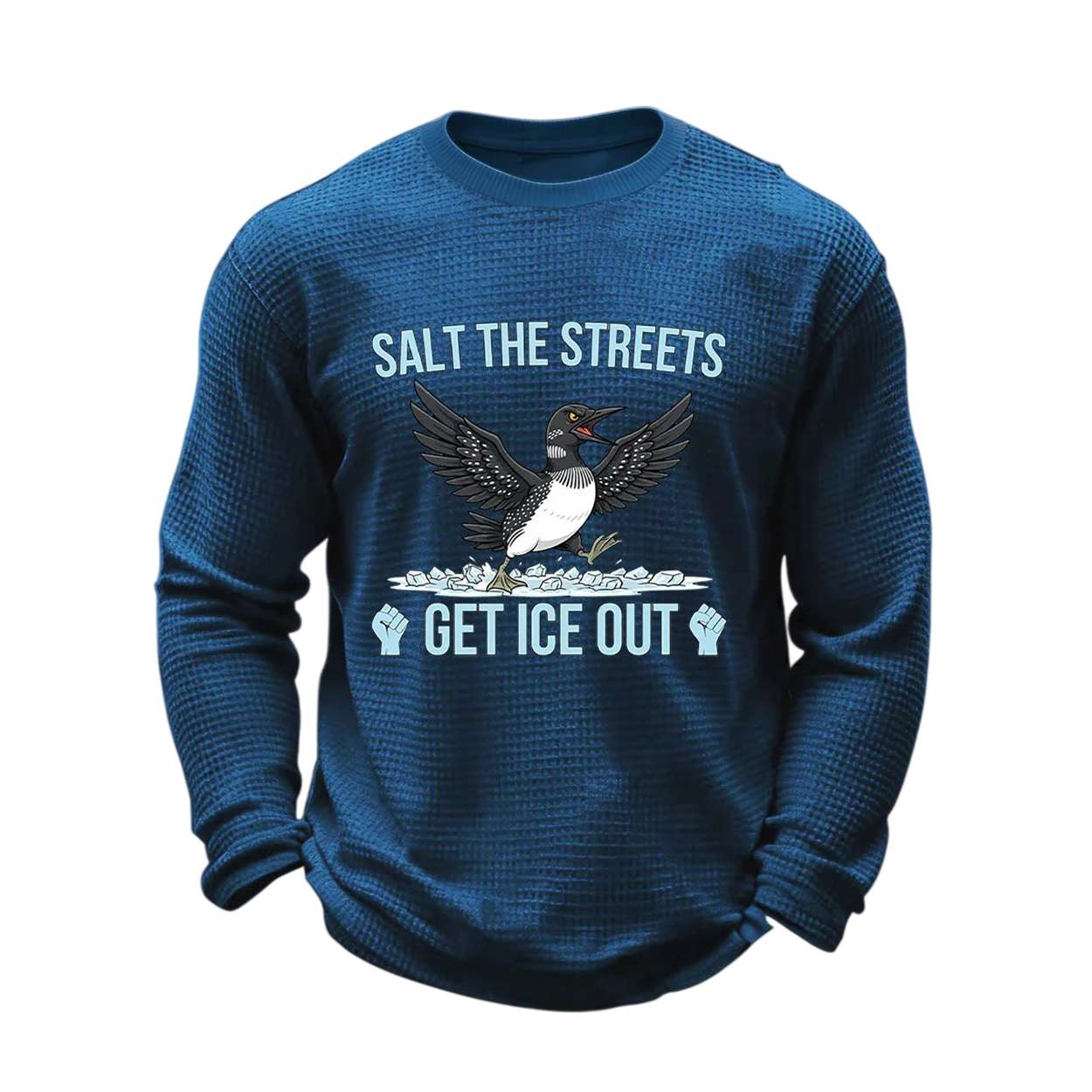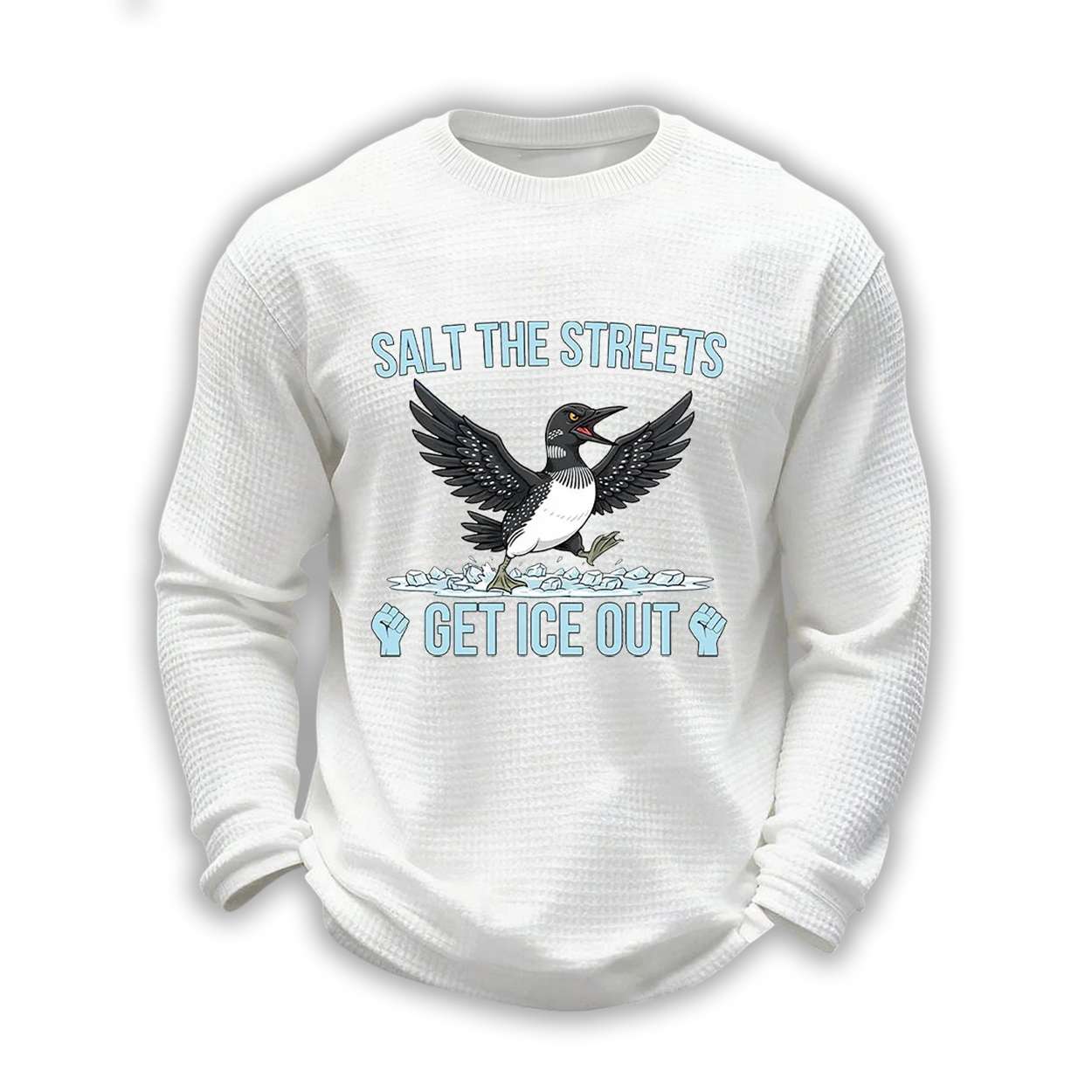 The Men’s Minnesota Loon Salt the Streets Get ICE Out Waffle Long Sleeve T-Shirt blends bold symbolism with activism. Featuring a striking loon graphic and resistance messaging, it honors grassroots movements, northern identity, and the fight against unjust immigration enforcement.