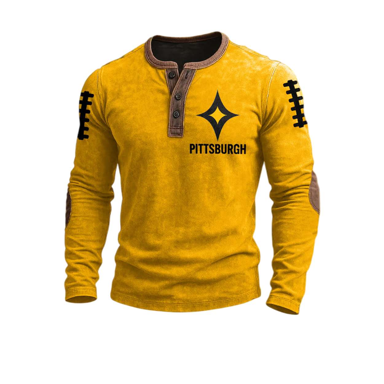 Steel City Legacy: Men’s Steelers Football Print Henley Top