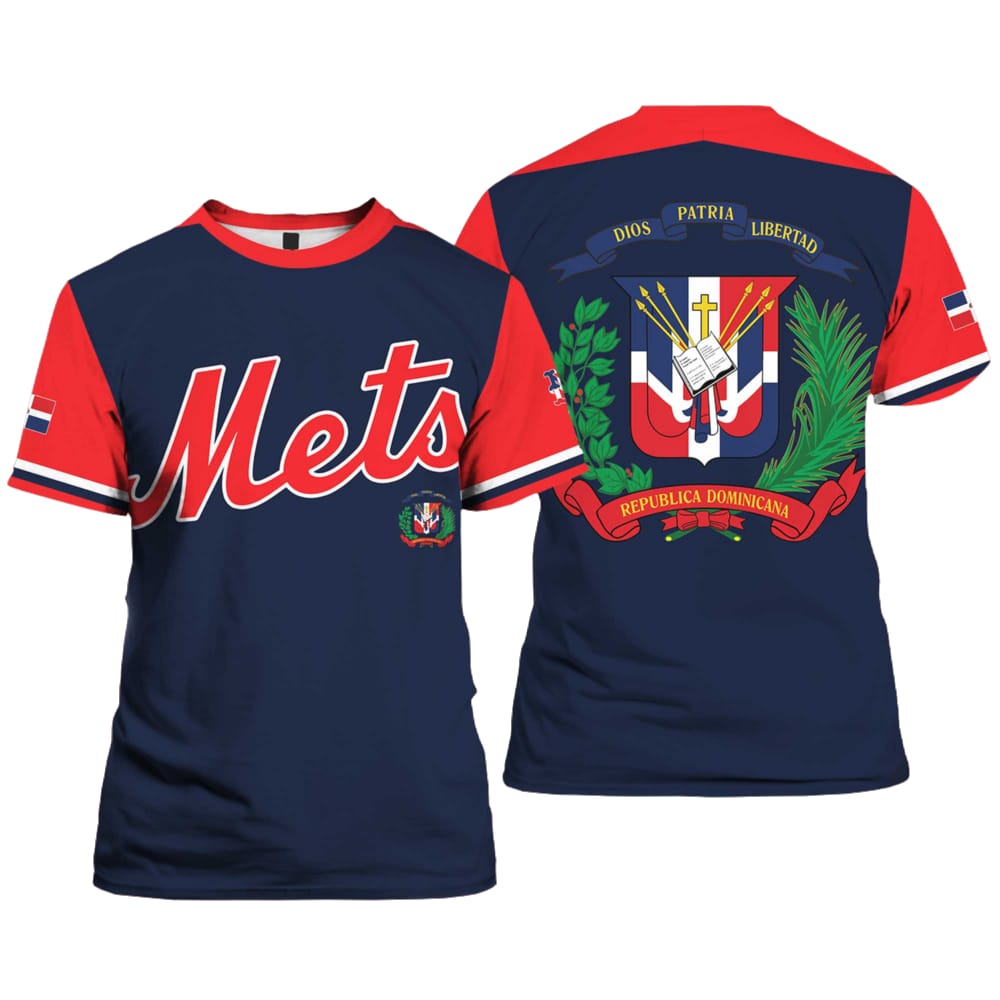Show your pride with the Mets Dominican Republic Theme Shirt 2025. Featuring a bold design that combines the iconic Mets logo with the national symbols of the Dominican Republic, this shirt is perfect for sports fans, cultural enthusiasts, and anyone who wants to showcase their heritage. Ideal for both casual and game day wear, this shirt represents a unique fusion of sports and Dominican pride.