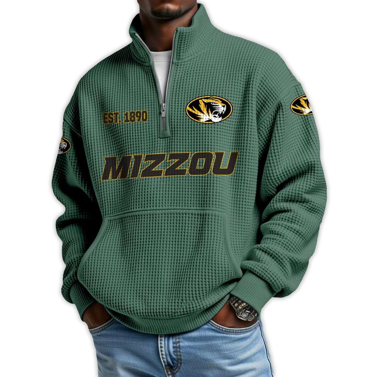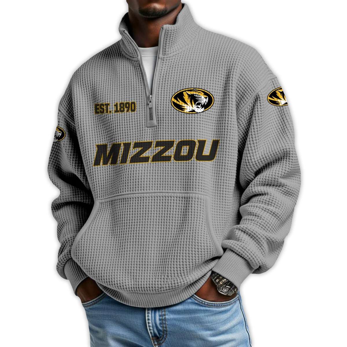 Show your pride in Missouri’s football legacy with the Missouri Football Est 1890 Waffle Stand Collar Half Zip Sweatshirt. Featuring bold graphics and historic emblems, this piece honors Mizzou’s roots, iconic athletes, and the enduring spirit of Tiger fans across generations.