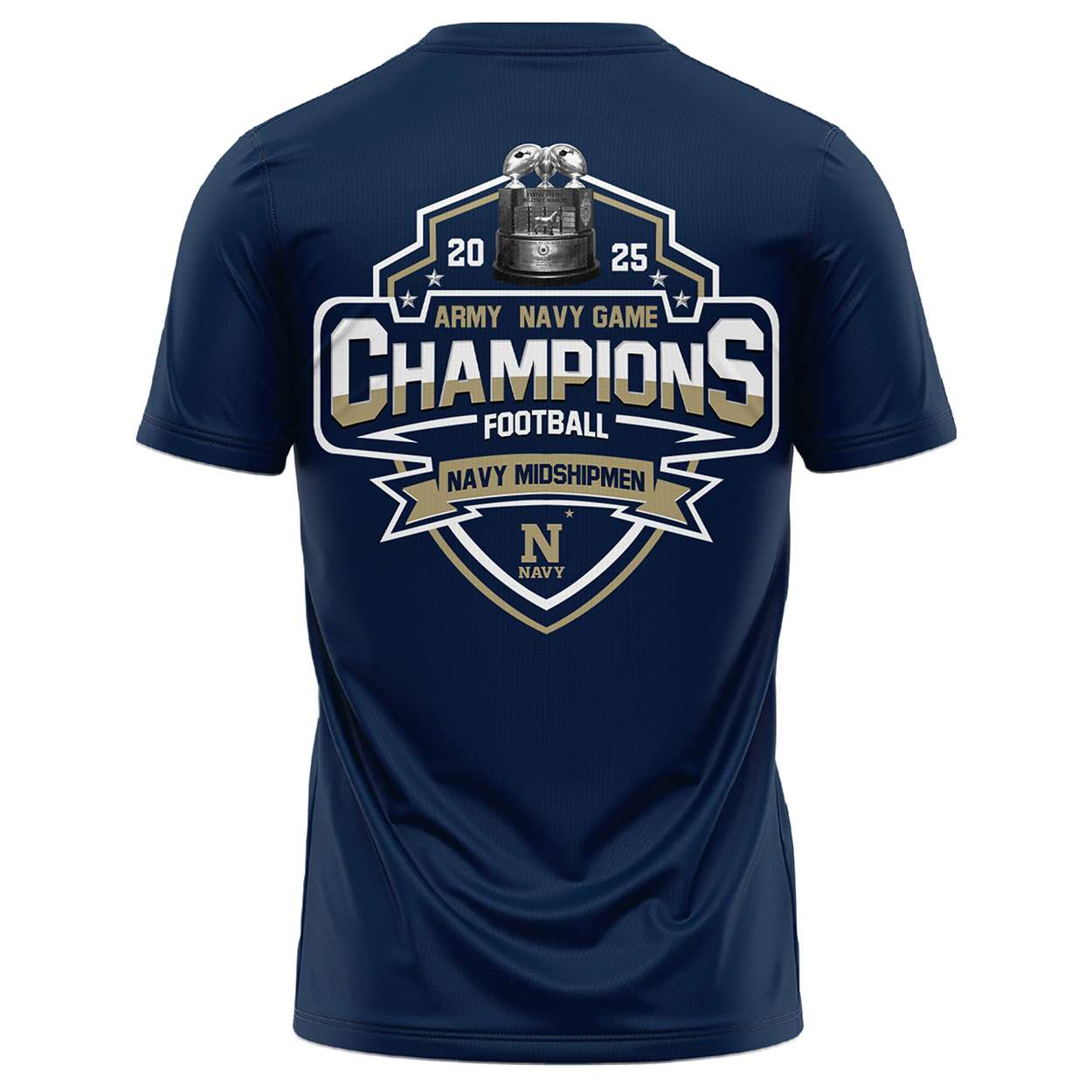 This shirt marks the Navy Midshipmen’s hard-fought win in the 2025 Army-Navy Game, securing the prestigious Commanders-In-Chief Trophy. It reflects a tradition of honor and rivalry dating back to 1972, where service academies battle for national recognition and pride.