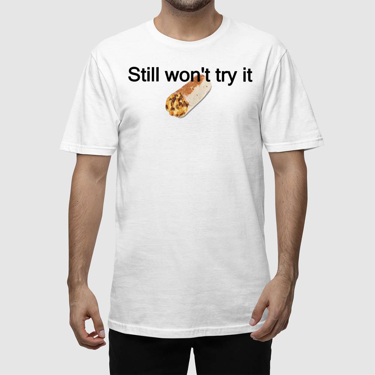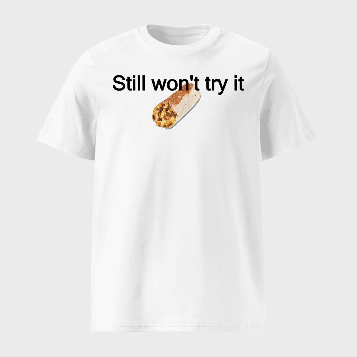 This shirt immortalizes that moment with a bold burrito graphic and the phrase “Still won’t try it,” echoing Jokic’s dry humor and offbeat personality. It’s a nod to how athletes shape narratives beyond stats—through habits, interviews, and unexpected quirks.