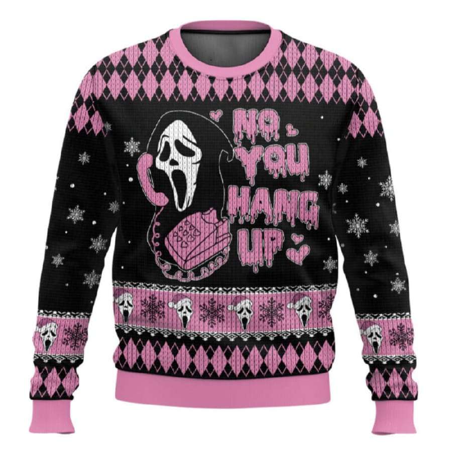 No You Hang Up Ghostface Ugly Christmas Sweater – Horror Meets Holiday Spirit!