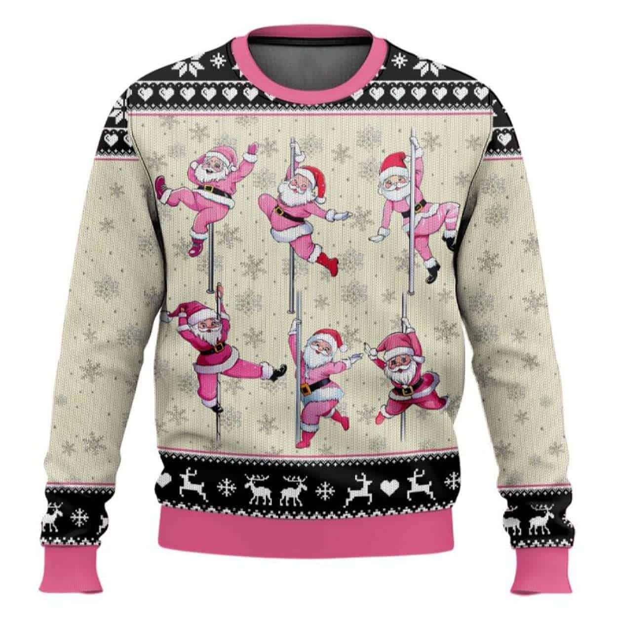 Get the North Pole Dancer Santa Funny Ugly Christmas Sweater that’s taking holiday parties by storm. Featuring playful pole-dancing Santas in pink suits, this design humorously reimagines Santa’s winter workout routine while nodding to pop culture’s love of self-expression and body positivity. Perfect for laughs, photos, and memorable gatherings.