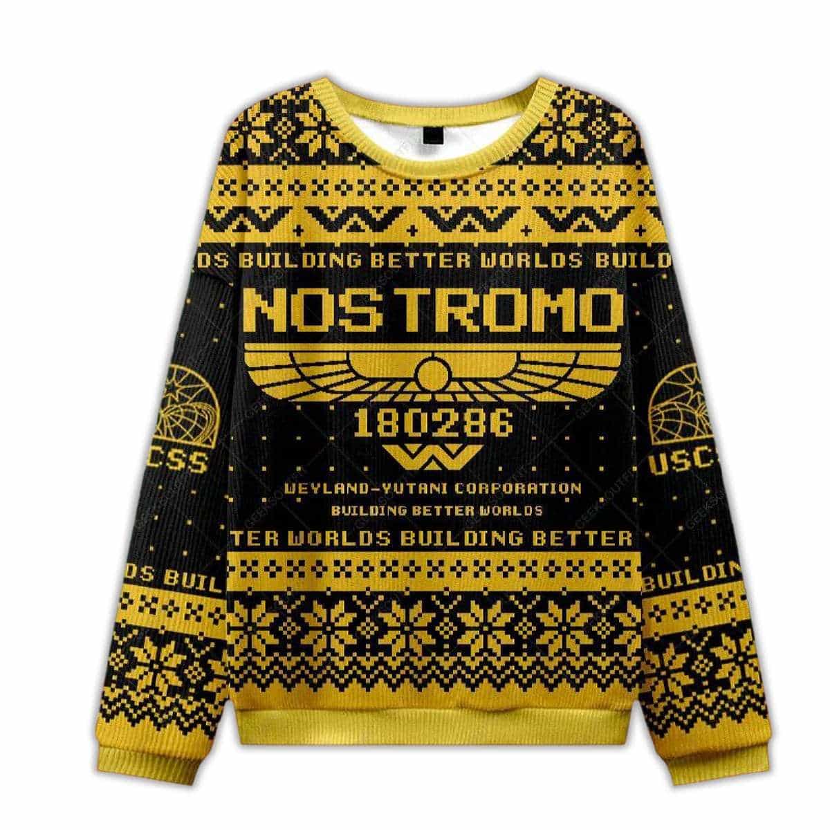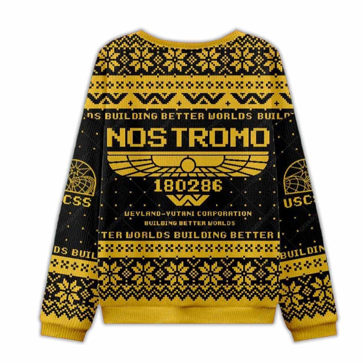 Channel the eerie legacy of the USCSS Nostromo with this Nostromo 180286 Ugly Christmas Sweater. Featuring Weyland-Yutani’s iconic slogan and ship details, it’s a bold nod to sci-fi history, corporate dystopia, and Ripley’s unforgettable fight for survival in deep space.