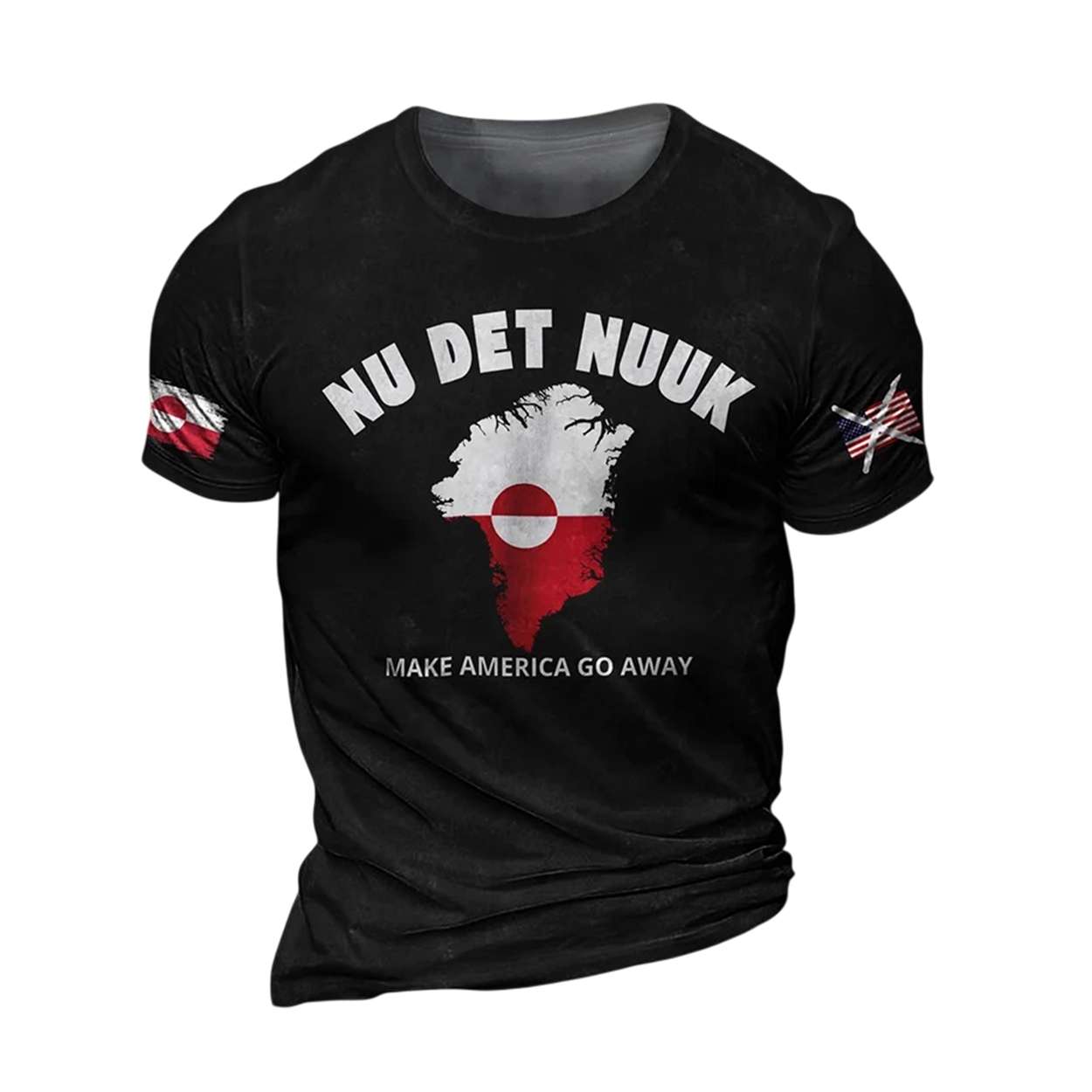 On the sleeves, the Greenlandic flag contrasts a torn American one, visually narrating a clash of identities. This shirt resonates with those who champion indigenous sovereignty, environmental stewardship, and the right to self-determination in a rapidly changing world.