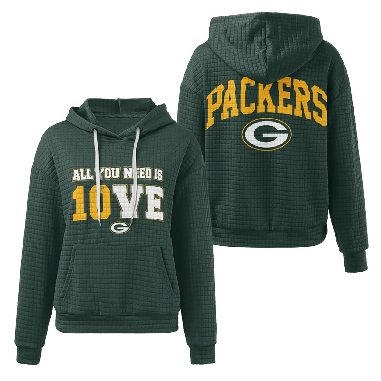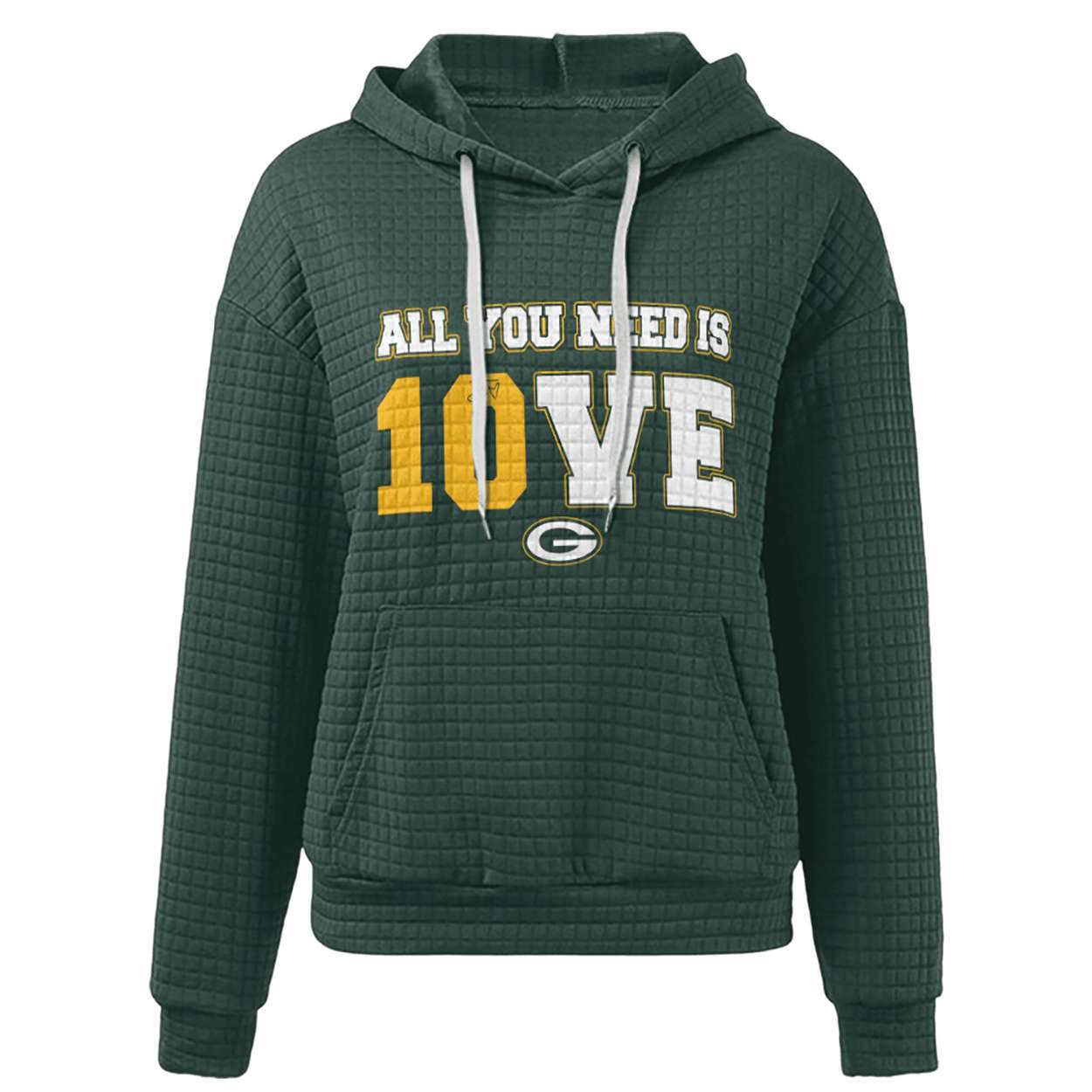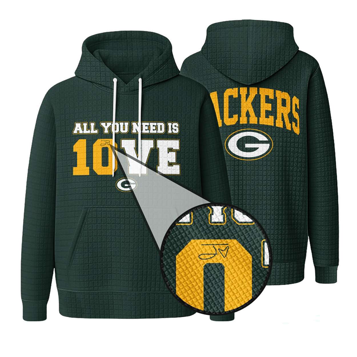 Packers All You Need Is LOVE 10 Signature Waffle Hoodie – Jordan Love Signature Edition