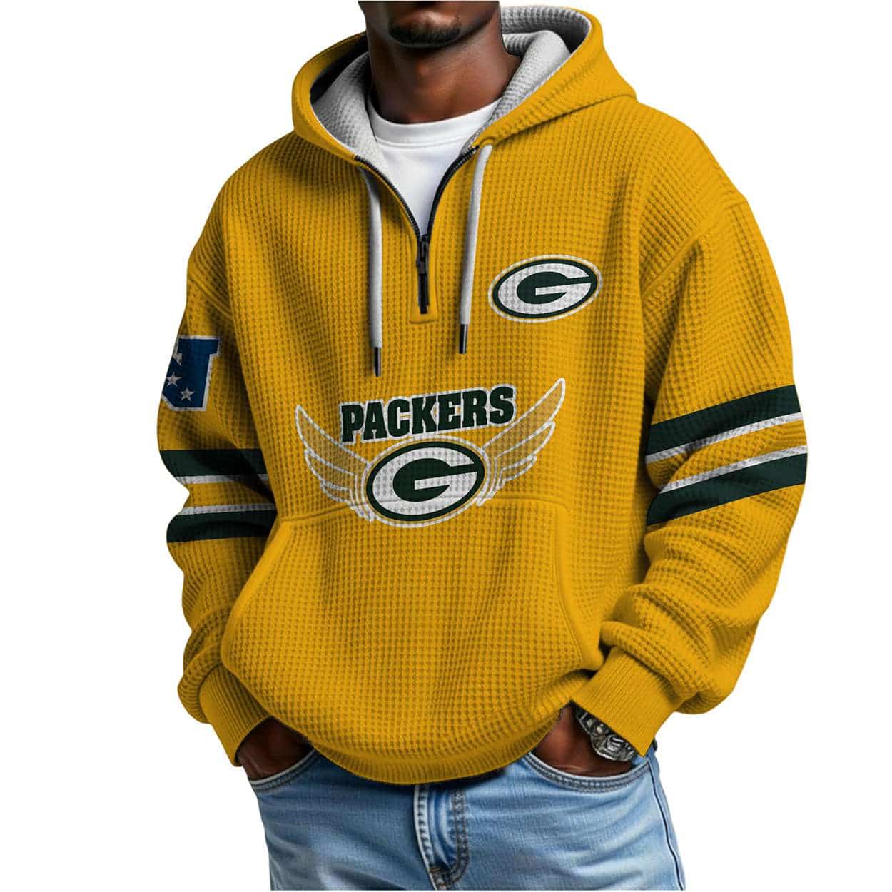 Green and gold stripes evoke unity among fans who’ve weathered seasons together. This hoodie isn’t just apparel—it’s a tribute to shared memories, historic wins, and the enduring heartbeat of Lambeau Field’s frozen tundra.