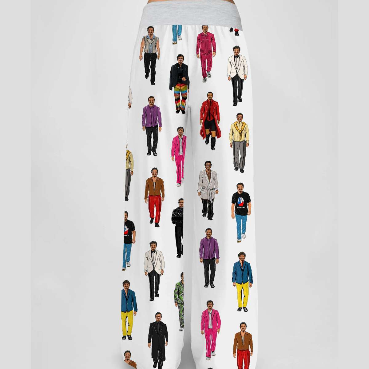 Make a bold entrance with the Pascal Celebrity Contrast Wide Leg Pants—featuring a parade of fashion-forward personas in vibrant attire. Inspired by cultural icons and street-style evolution, this design pays homage to individuality, expression, and the art of walking with purpose.