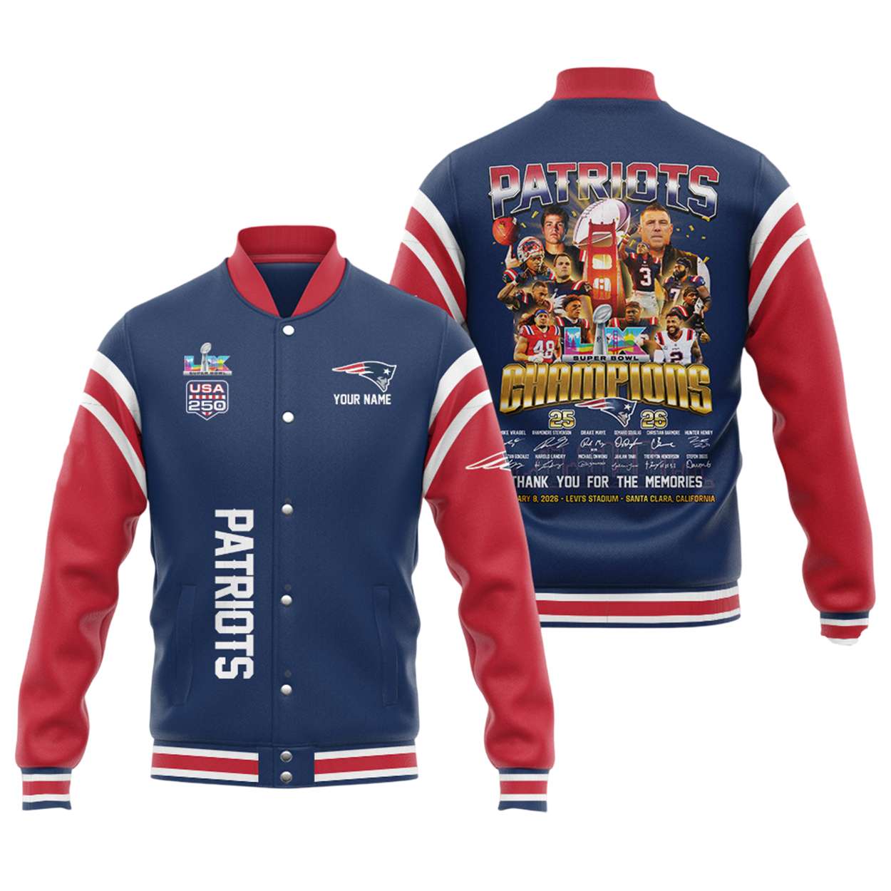 Patriots Super Bowls LX Champions USA 250 Baseball Jacket – A Legacy in Motion