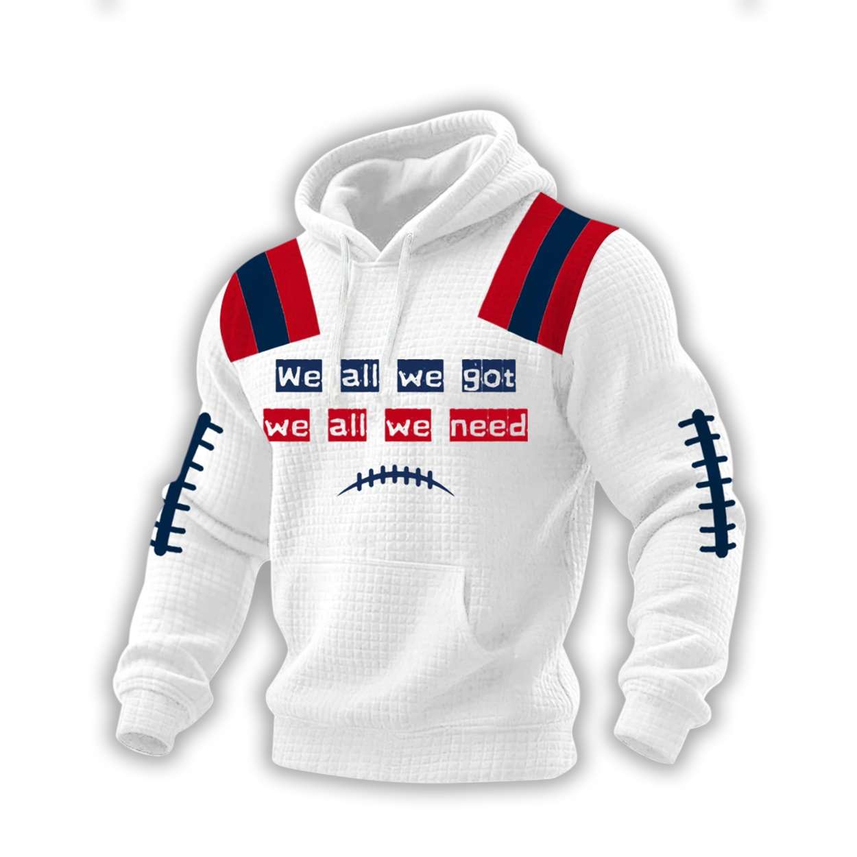 The Patriots We All We Got We All We Need Casual Checkered Hoodie channels unity and grit. Inspired by locker room mantras and pivotal moments in team history, it reflects the spirit of collective strength and the voices that shaped New England’s legacy.