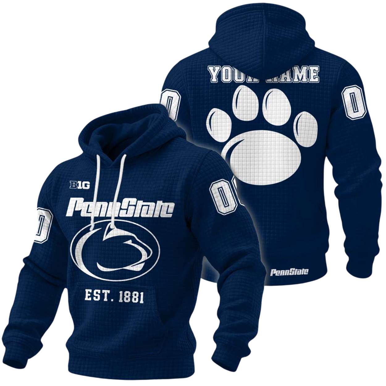 Show your pride with the Penn State Big 10 Est 1881 Waffle Hoodie — a tribute to tradition, grit, and the legacy of the Nittany Lions. Featuring bold graphics and customizable details, it honors a university rooted in resilience and academic excellence.