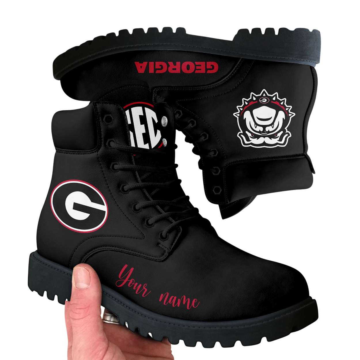 The red cursive name detail personalizes your connection to a team that’s battled through decades of triumph and transformation. From Herschel Walker’s explosive runs to recent championship glory, these boots echo the roar of Sanford Stadium.