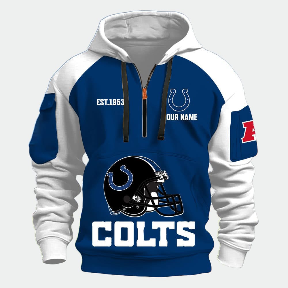 Every stitch speaks of connection—to the city, to the team, and to the fans who have worn the Colts’ blue for decades. Beyond game day, it stands as a symbol of identity, linking past and present through sportsmanship and shared passion. Whether worn in the stadium or on the streets, the Personalized Colts Est 1953 Quarter Zip Hoodie is not just apparel—it is history carried forward, one fan at a time.