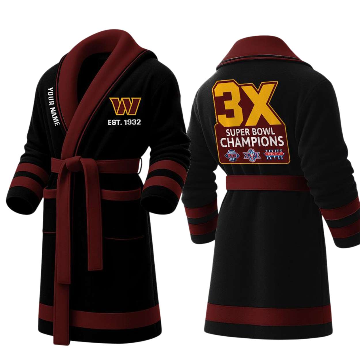 Wrap yourself in legacy with the Personalized Commanders Est 1932 3X SB Champions Fleece Bathrobe. Featuring bold championship graphics and customizable details, this robe honors Washington’s storied past, iconic players, and the enduring pride of fans across generations.
