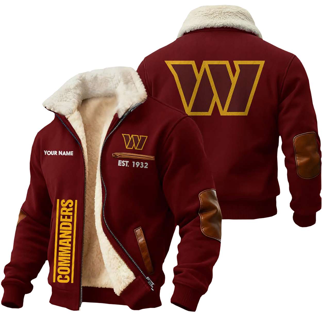 The “Commanders Est 1932” jacket honors a franchise born during the Great Depression, when football offered hope and unity. The founding year stitched beside the emblem reflects a journey shaped by resilience, reinvention, and the enduring spirit of Washington’s community.