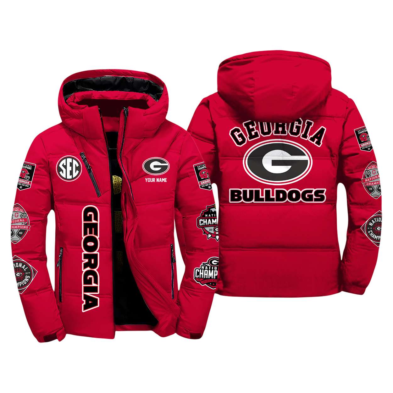 Show your pride with the Personalized Georgia Football Champions Winter Down Jacket. Featuring iconic patches from the Bulldogs’ 2021 national triumph, this jacket honors Georgia’s legacy, SEC dominance, and unforgettable moments in college football history. A must-have for true fans.