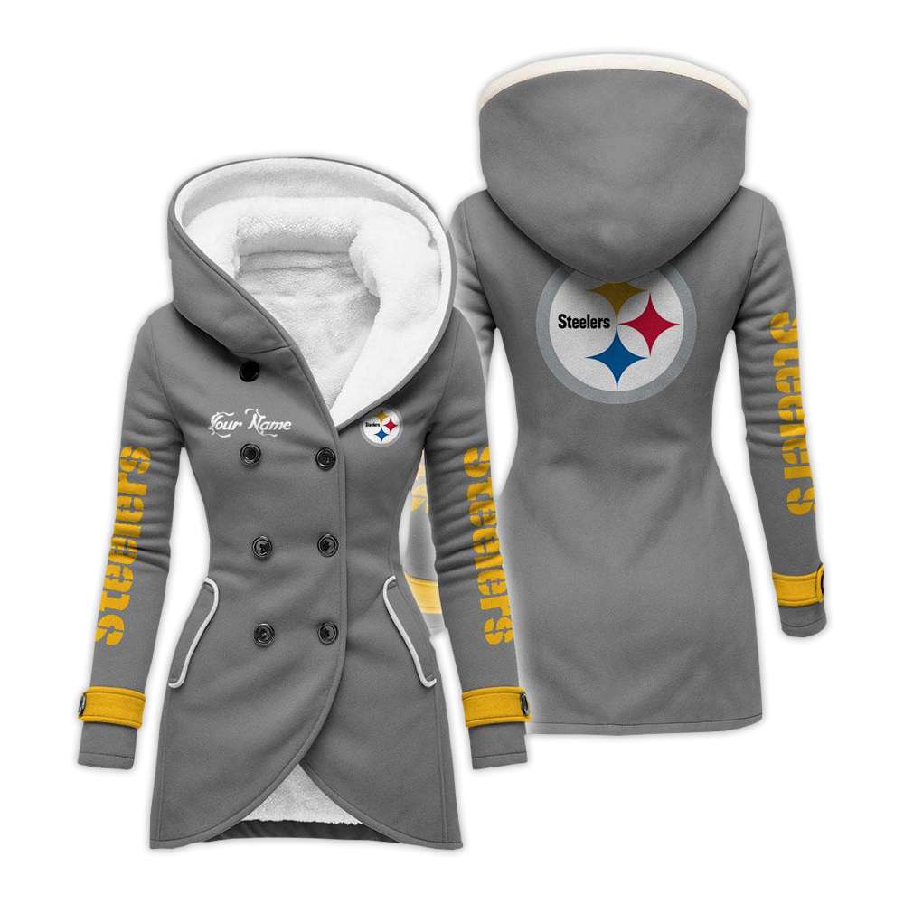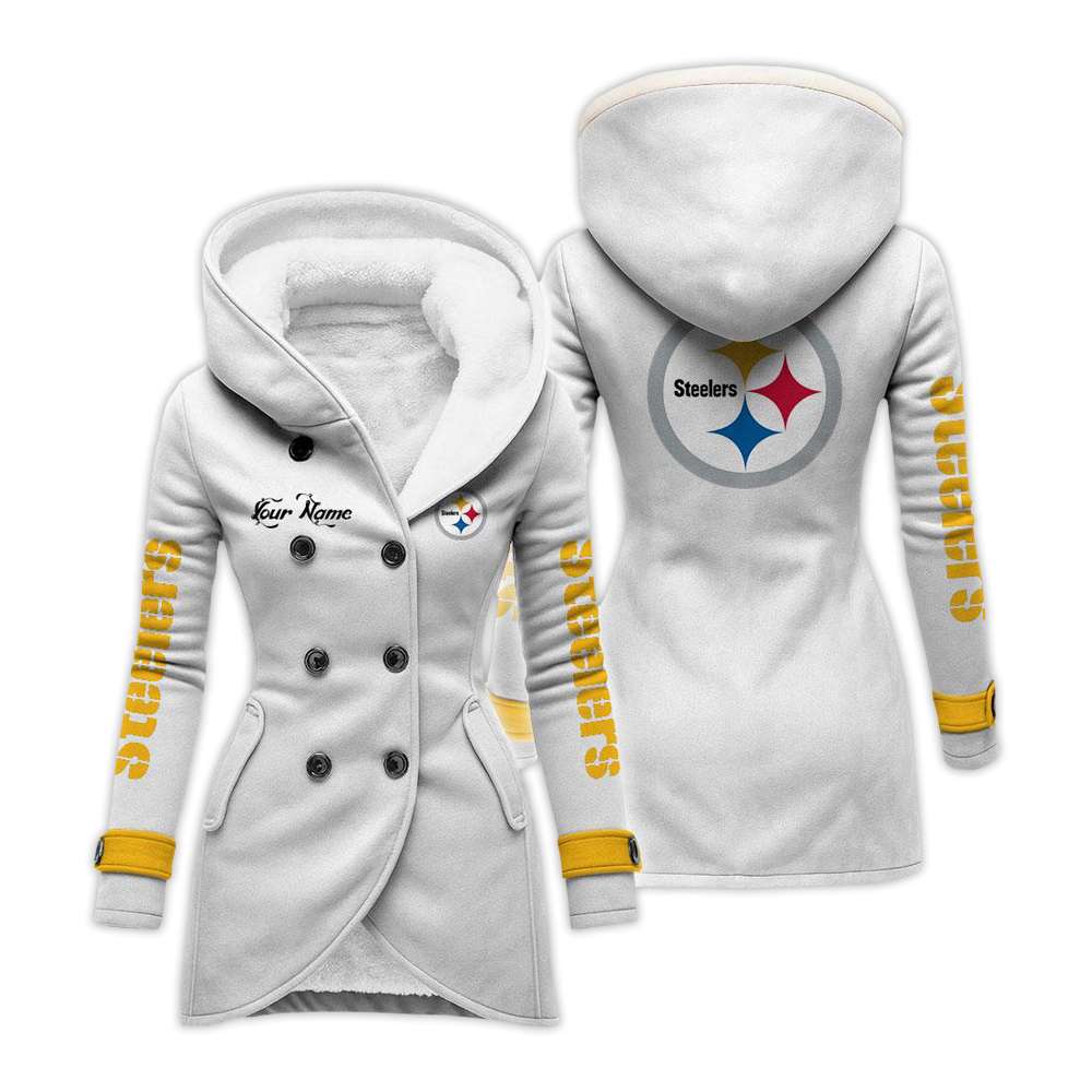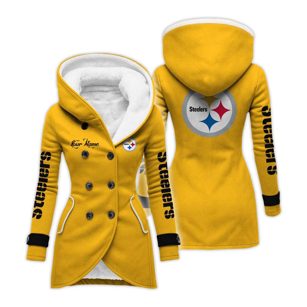 Show your Pittsburgh pride with the Personalized Steelers Long Hooded Fleece Jacket. Featuring iconic team graphics and customizable details, this coat connects fashion with football legacy. Perfect for fans who value warmth, heritage, and bold style.